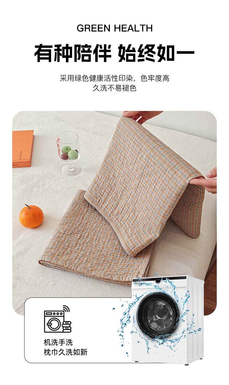 (总)沐瑟家纺 2025新款简约风多功能纱布盖毯纱布毯子毛巾被床盖沙发巾单毯枕巾枕套三件套,H本色,H橙色,H咖色,大马士革本色