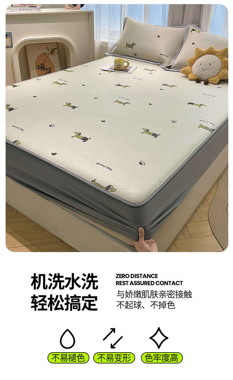 商品名称:居易简 2026新款卡通实拍小红书爆款凉豆豆凉席100%PE 乙纶凉感可水洗床席席子-床笠款 腊肠小狗