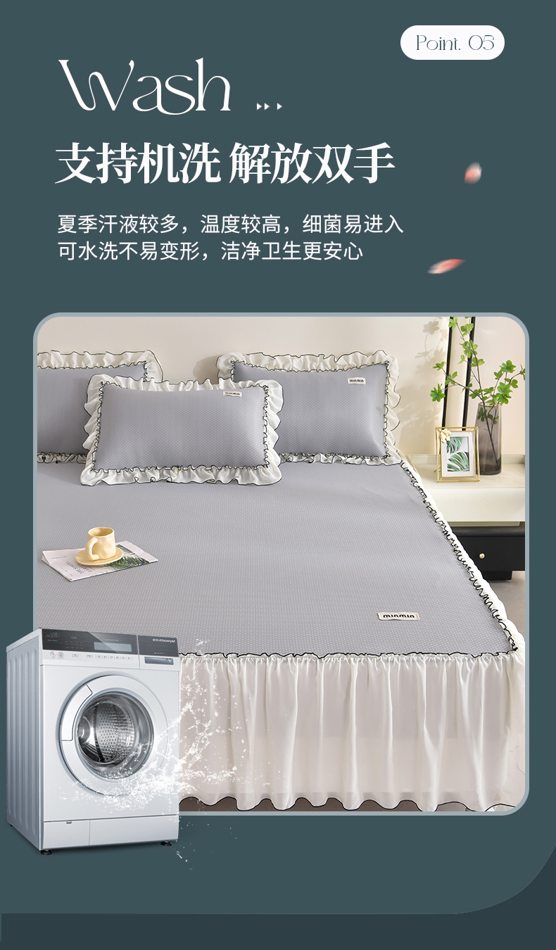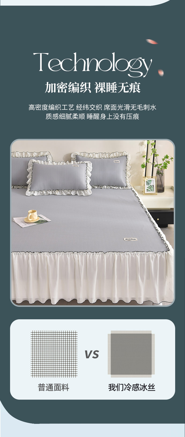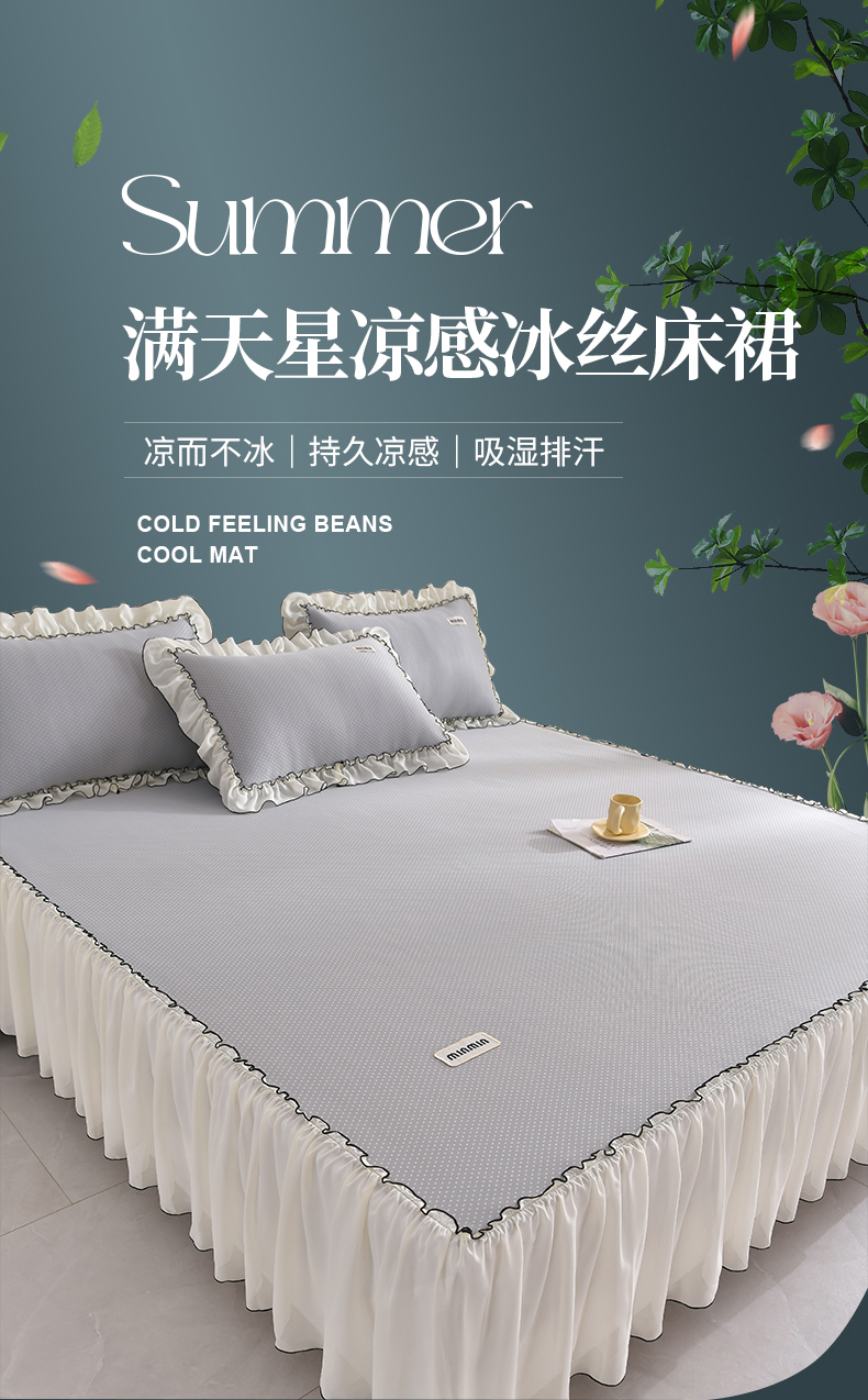 当前位置: 91家纺网 > 商品网购 > 床上用品 > 凉席 > 冰丝席 > 小牛席业 2026新款满天星凉感冰丝席黑边床裙凉席席子系列 满天星凉感席黑边床裙款-灰色