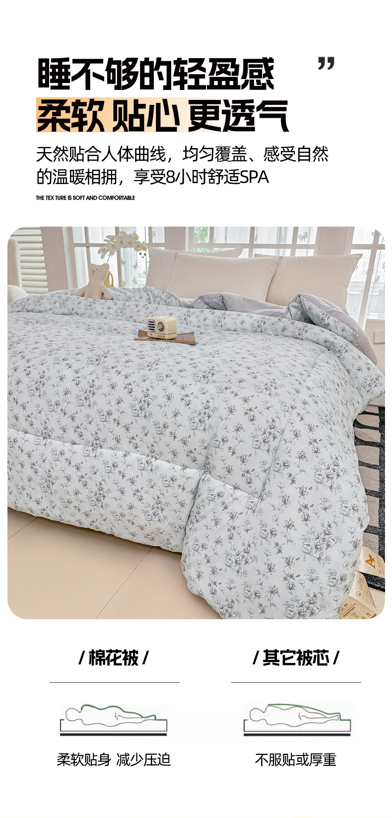 当前位置: 91家纺网 > 商品网购 > 被子 > 冬被 > 好欣怡家纺 2026新款110克云柔棉被子50%新疆棉花夏被冬被被芯直播首选(含检测报告) 云裳花语-冬被