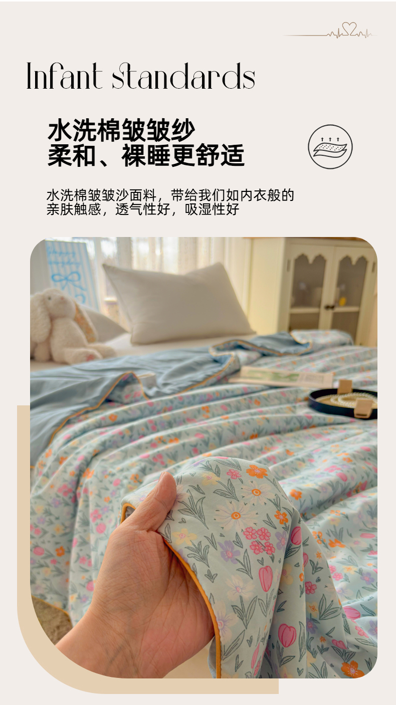 宜梦家居 2026新款水洗棉皱皱纱夏被夏凉被空调被 甜美可爱