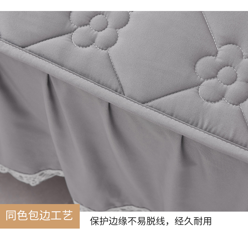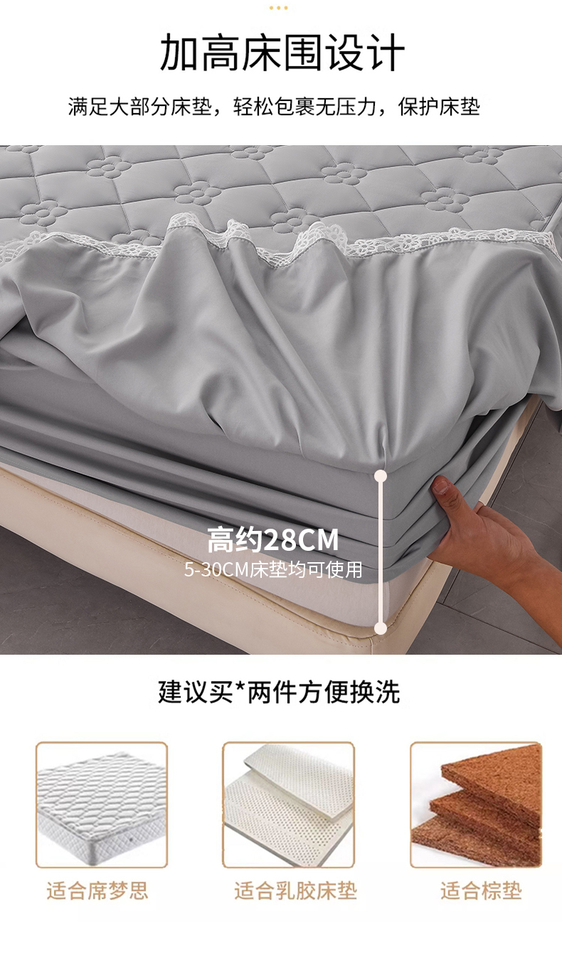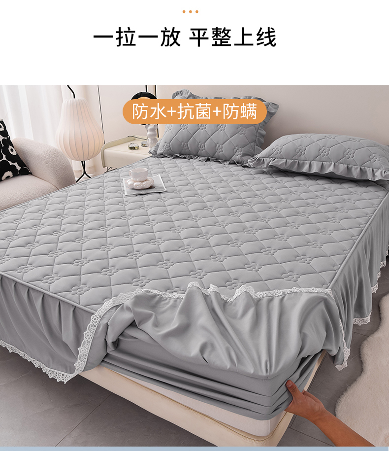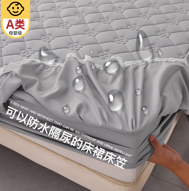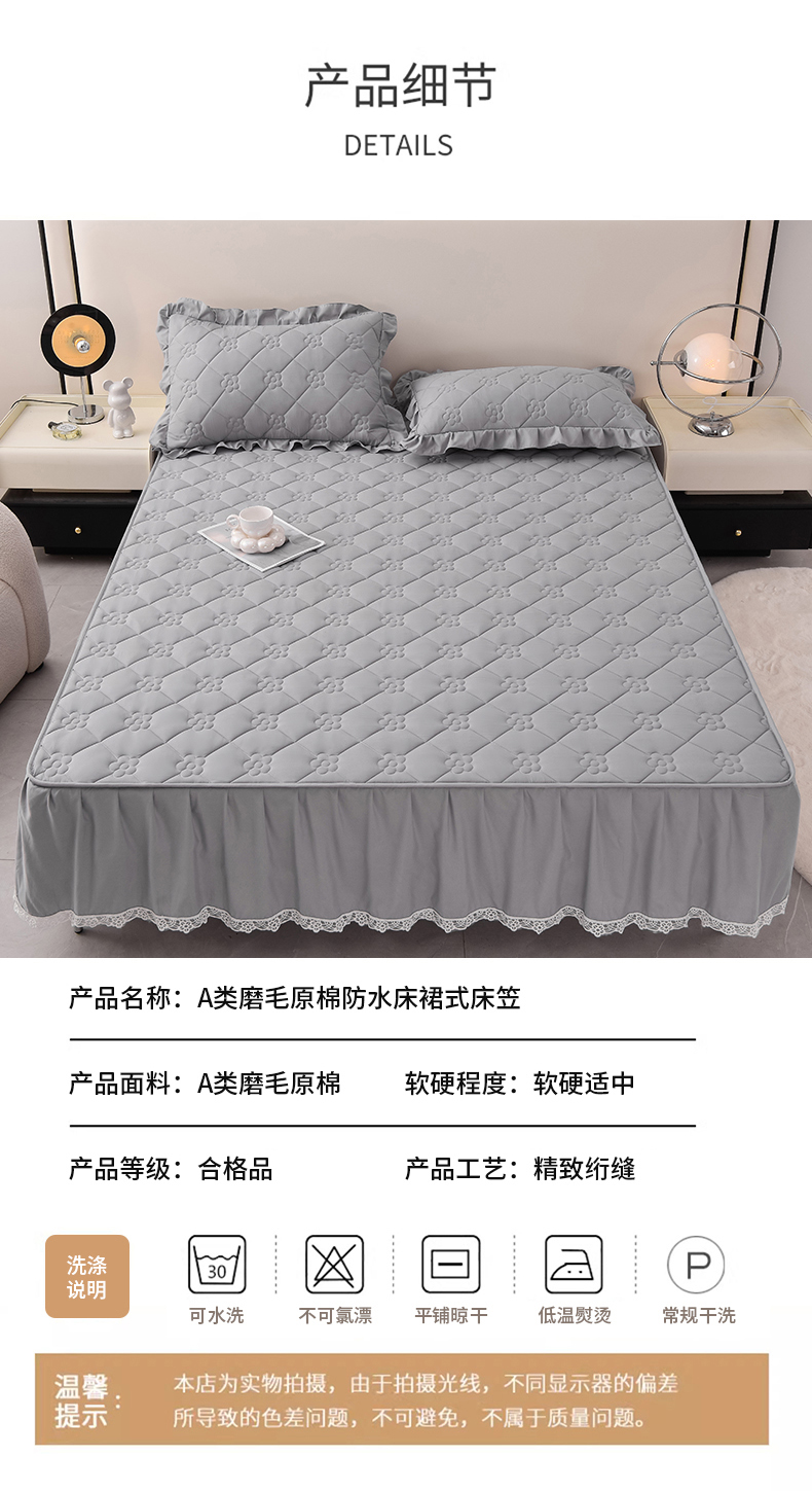 乐蔻家纺 2026春夏新款A类磨毛原棉防水隔尿太阳花床裙床笠床笠单件 太阳花防水-夜灰