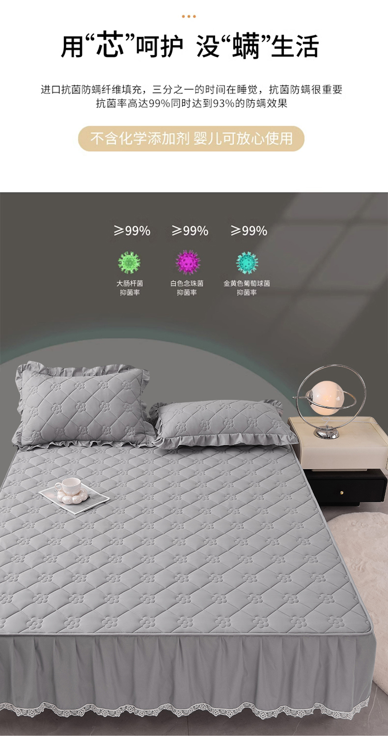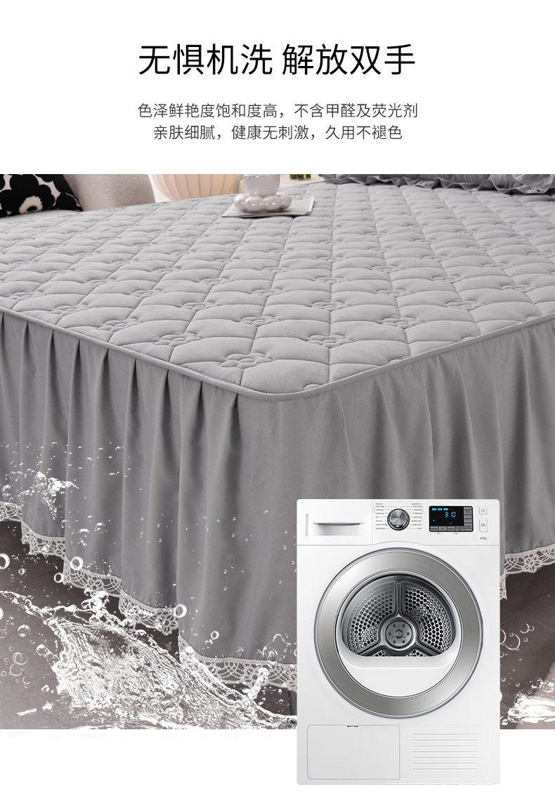 • 91家纺网 家纺一手货源 找家纺 乐蔻家纺 2026春夏新款A类磨毛原棉防水隔尿太阳花床裙床笠床笠单件 太阳花防水-夜灰