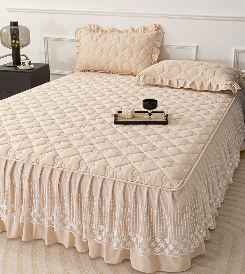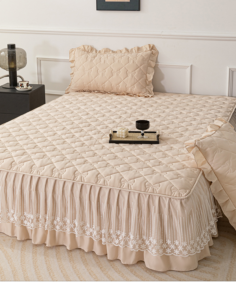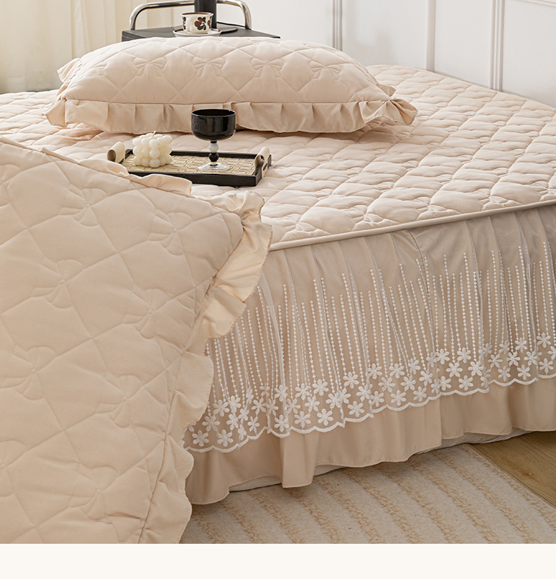 乐蔻家纺 2026春夏新款A类原棉大豆夹棉床裙床笠四件套床笠单件-蝴蝶结 蝴蝶结-优雅驼