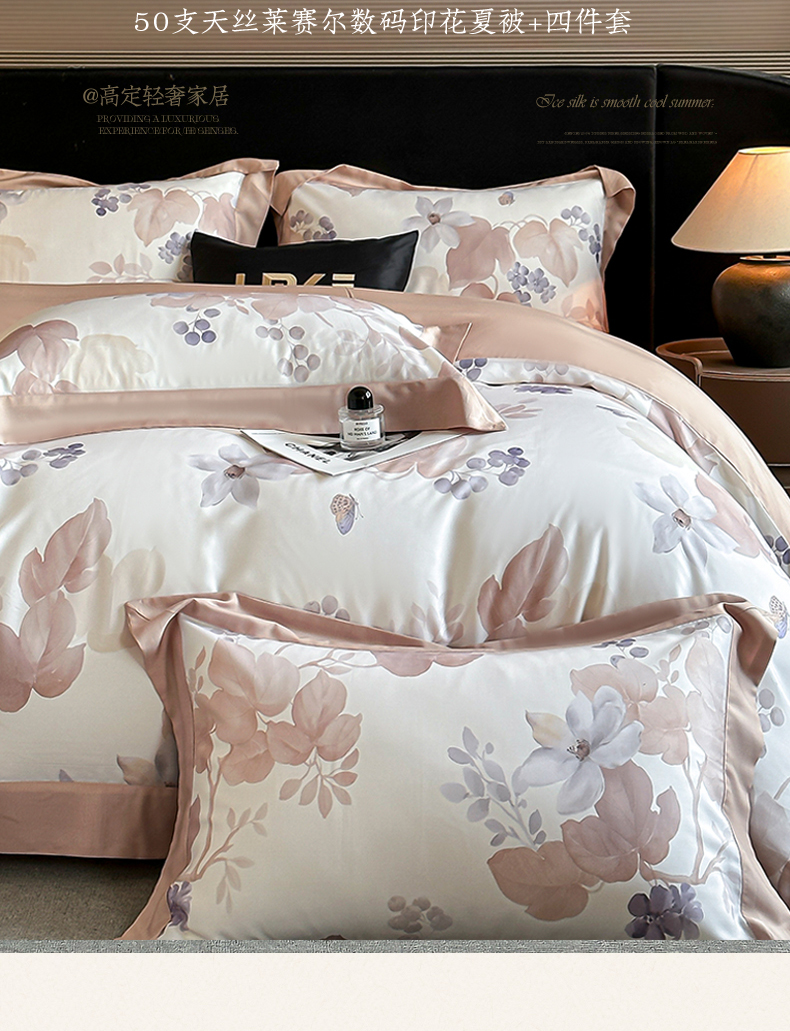 当前位置: 91家纺网 > 商品网购 > 床品套件 > 四件套 > 莱赛尔四件套 > 蓝米卡夫 2026夏季新款50S天丝数码印花夏被夏凉被空调被四件套 翠影-玉
