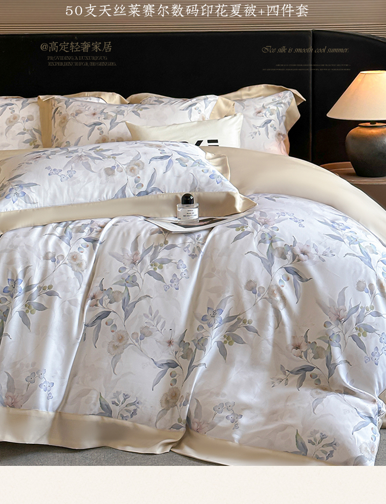 当前位置: 91家纺网 > 商品网购 > 床品套件 > 四件套 > 莱赛尔四件套 > 蓝米卡夫 2026夏季新款50S天丝数码印花夏被夏凉被空调被四件套 蔓悦-兰
