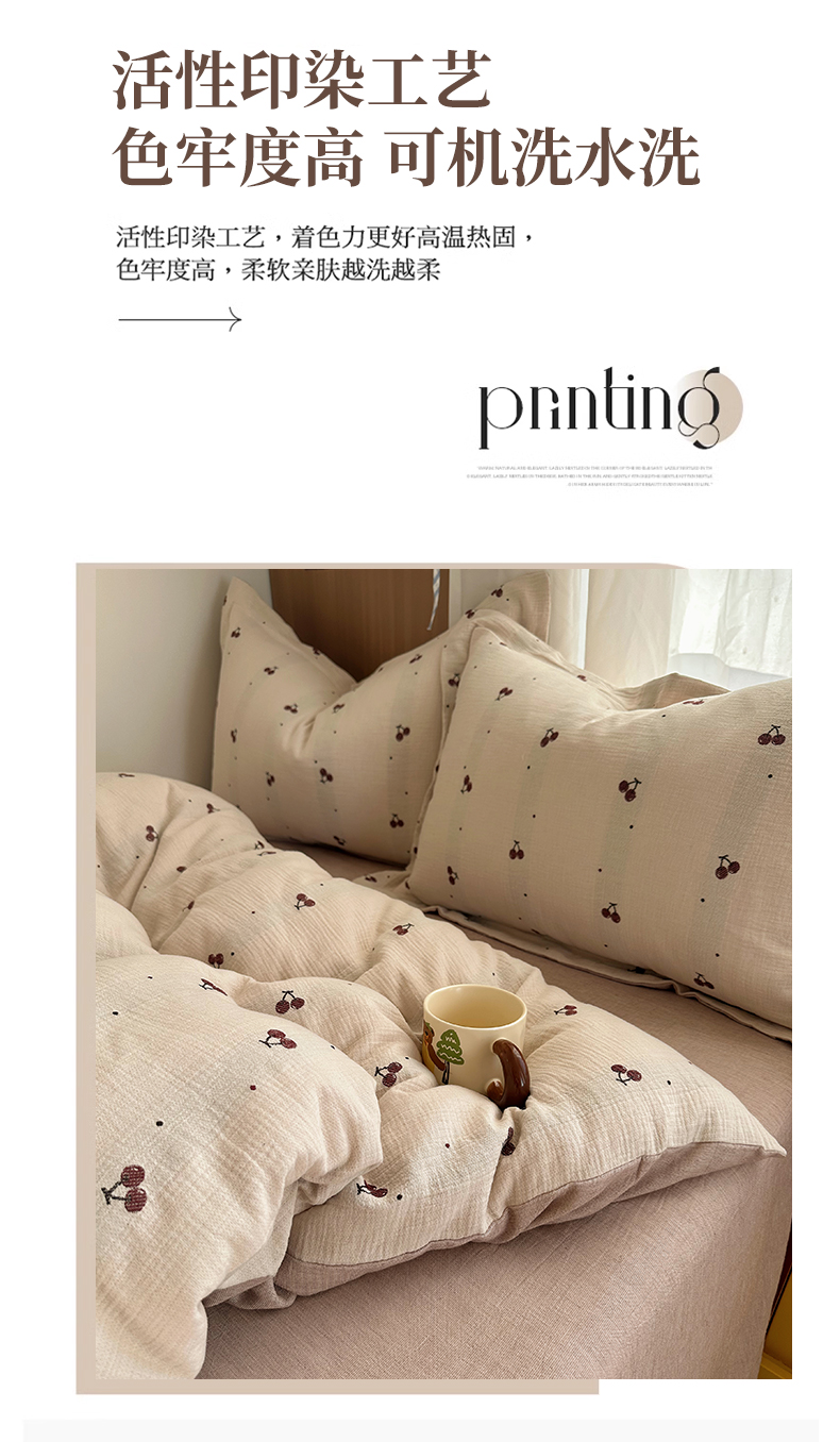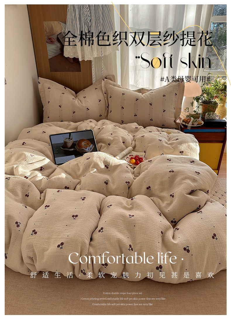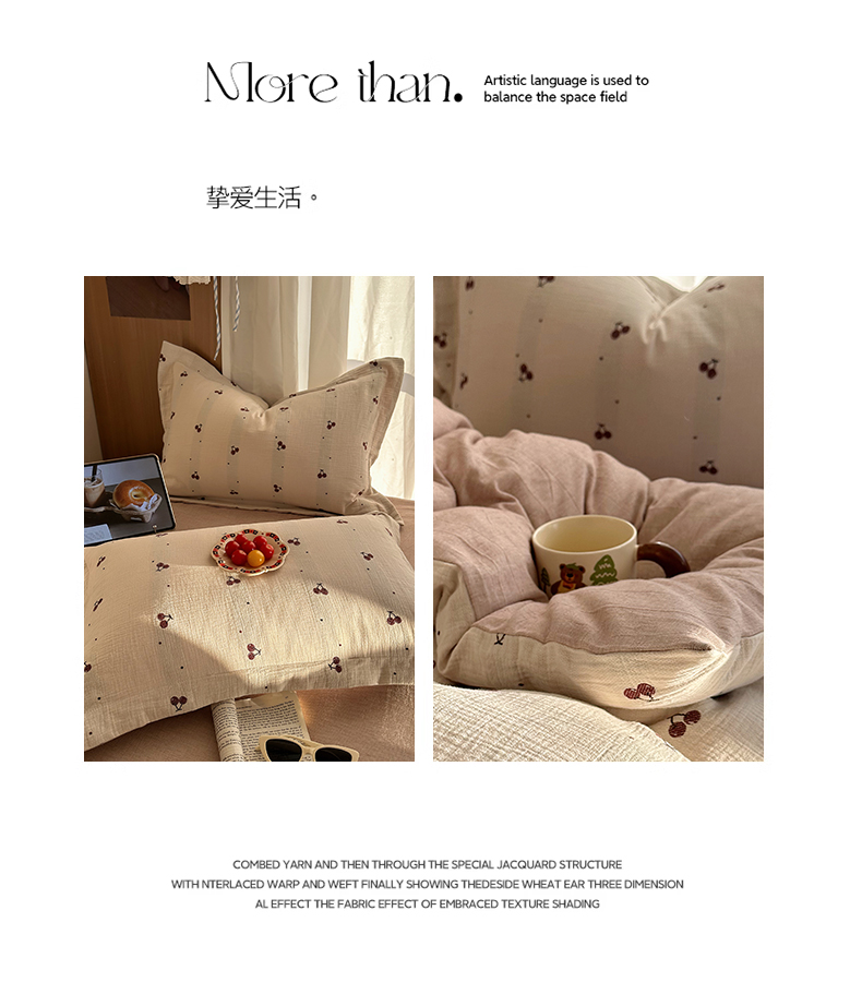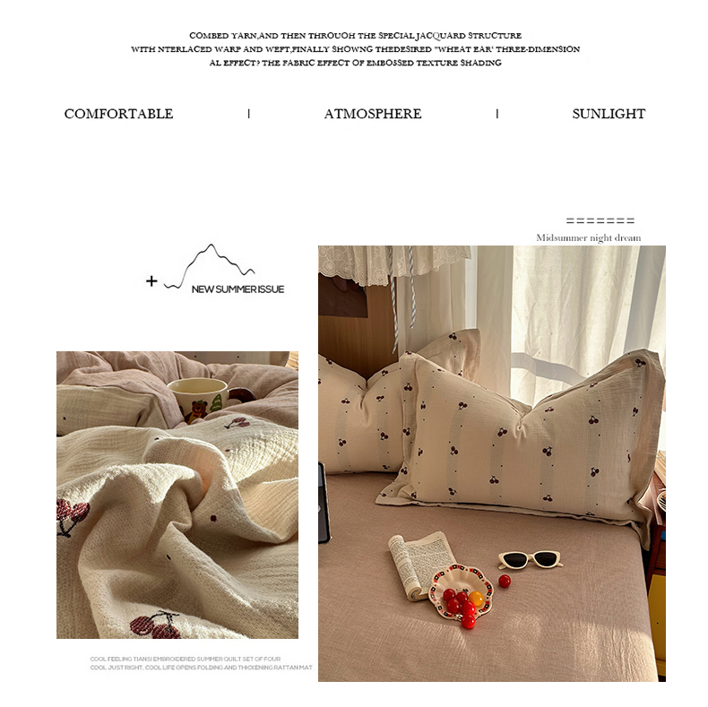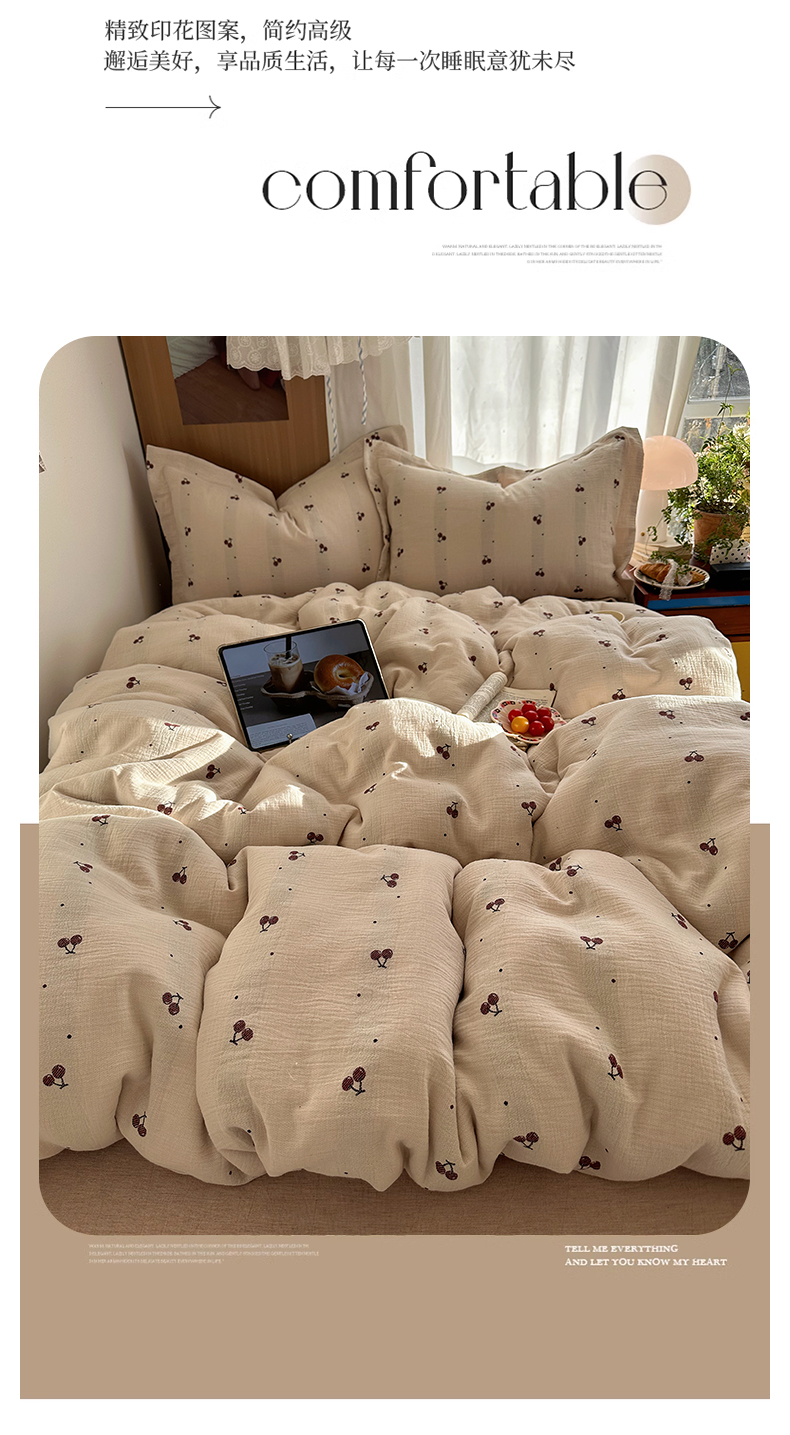 当前位置: 91家纺网 > 商品网购 > 床品套件 > 四件套 > 全棉普通四件套 > 萝莉家纺 2026新款全棉纯棉色织双层纱提花四件套 点点樱桃