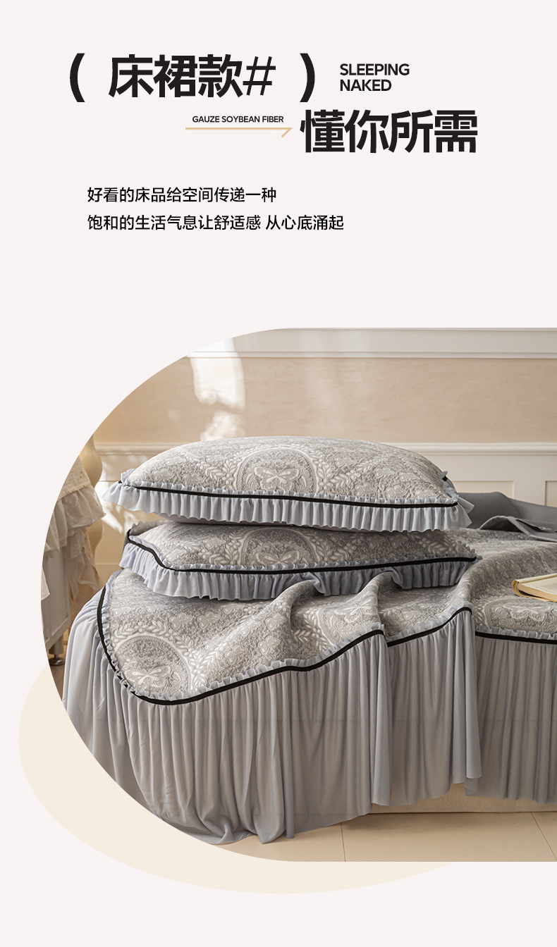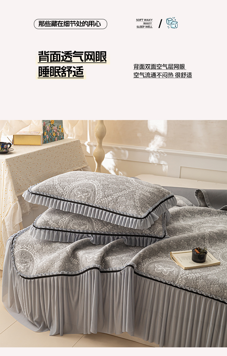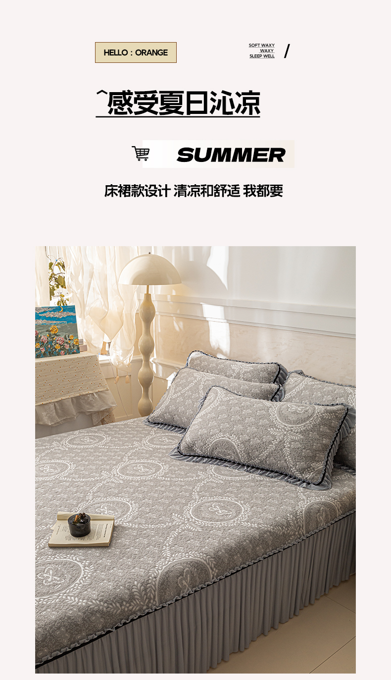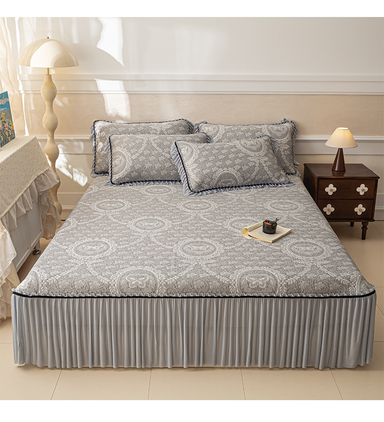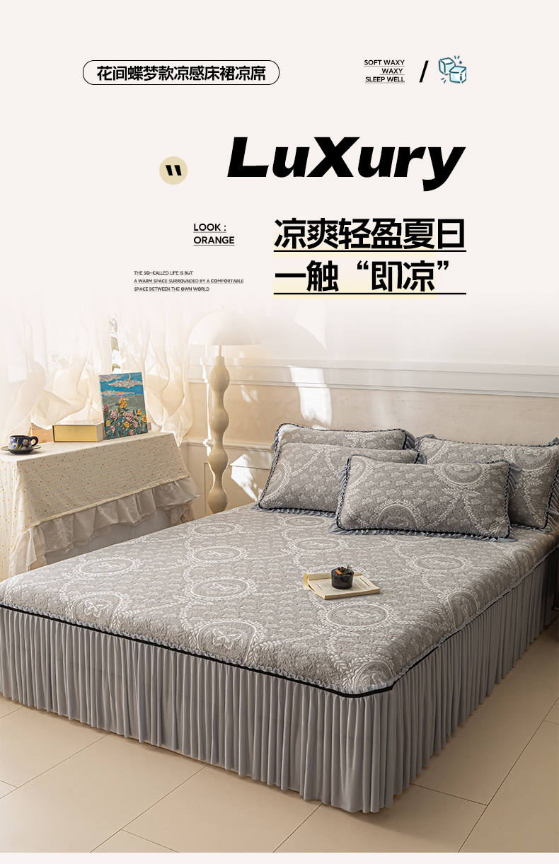 商品名称:雅居纺家纺 2026新款花间蝶梦款凉感床裙凉席席子 花间蝶梦-灰
