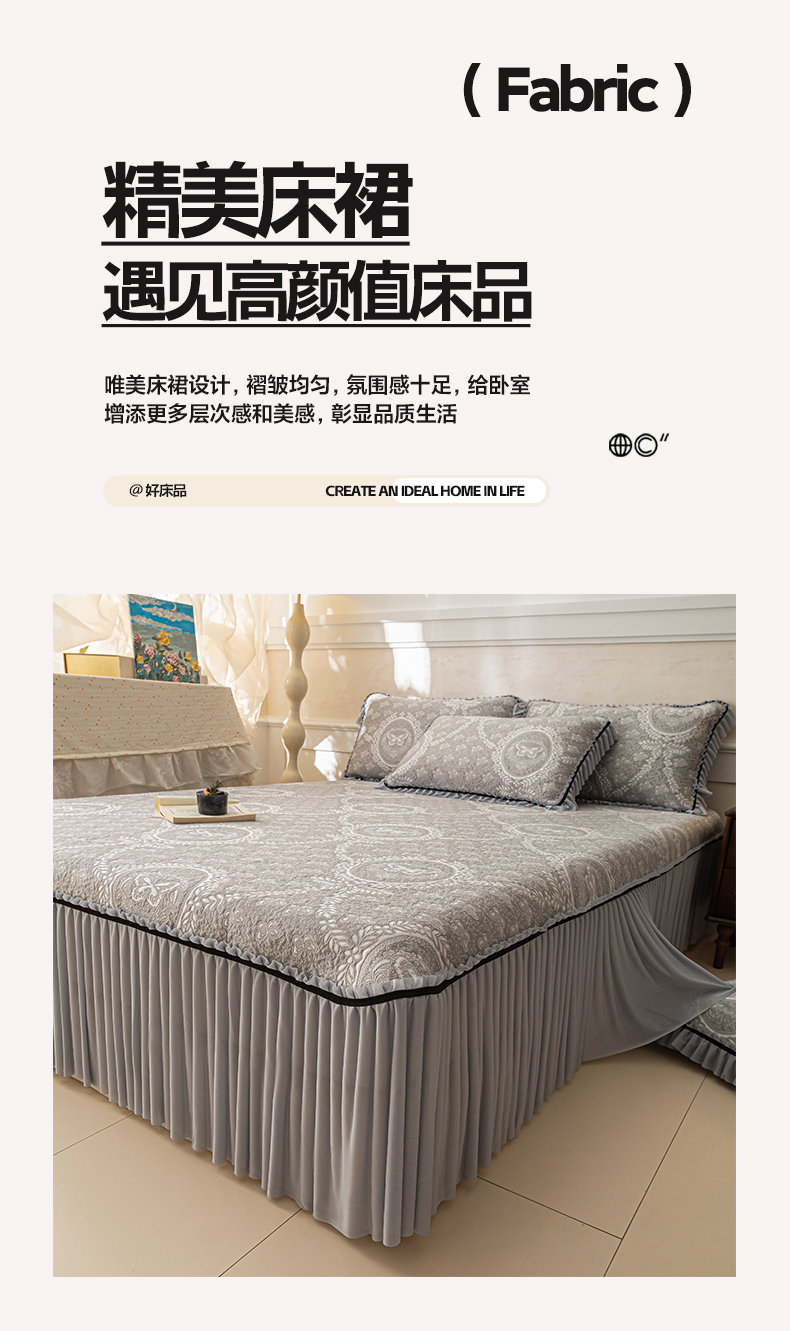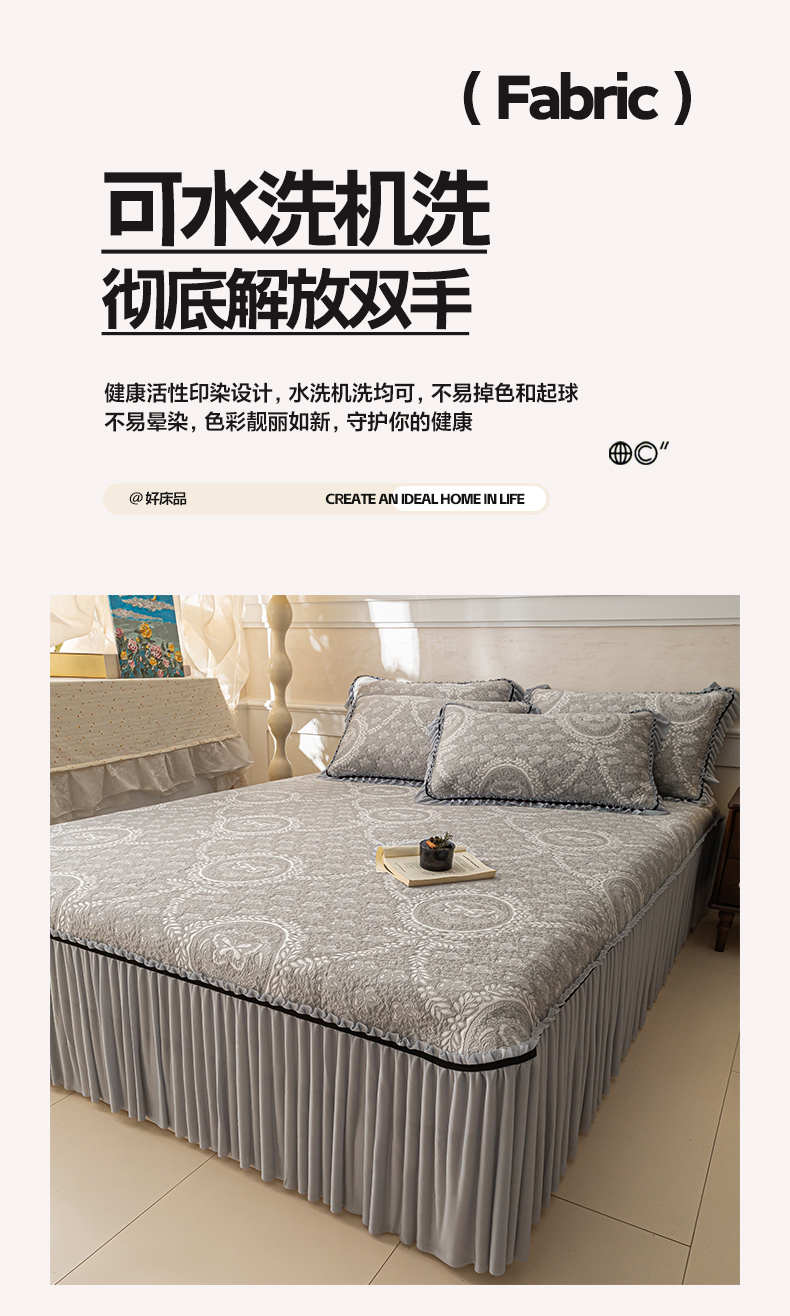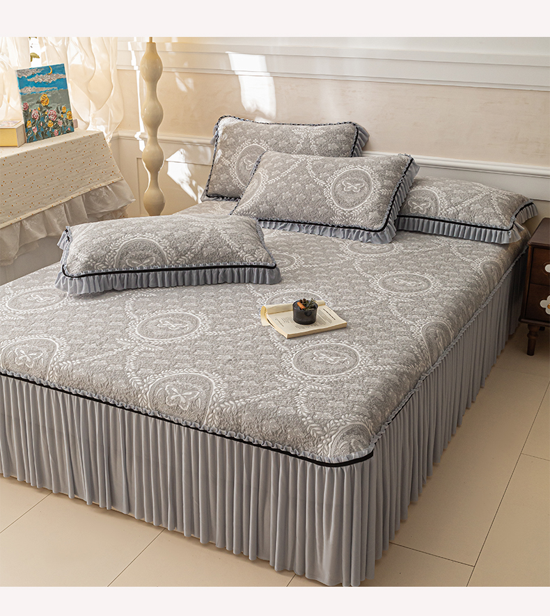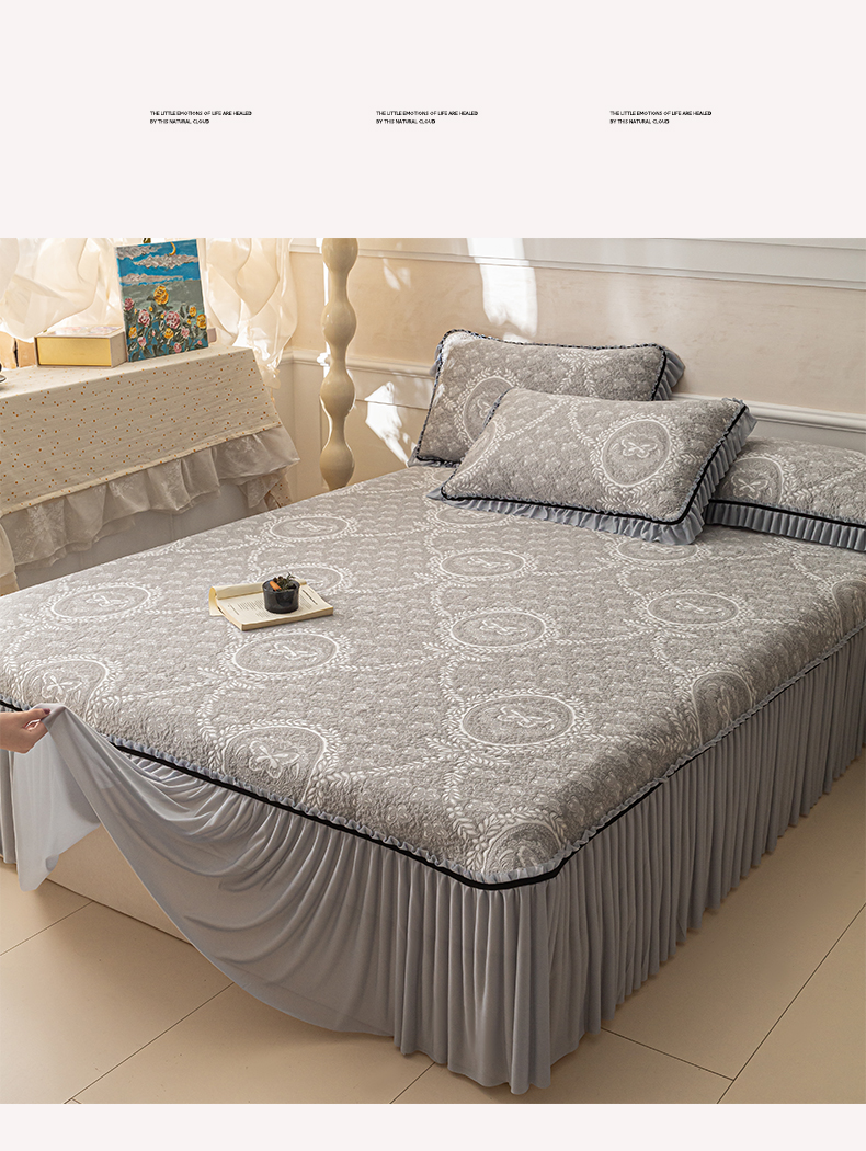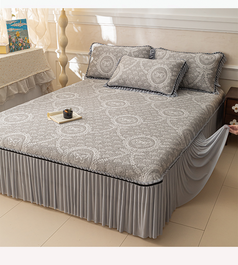 商品名称:雅居纺家纺 2026新款花间蝶梦款凉感床裙凉席席子 花间蝶梦-灰