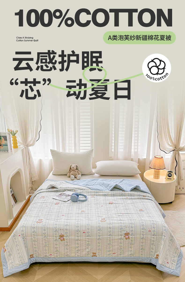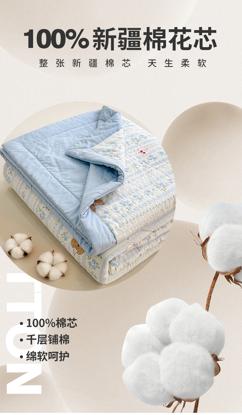 魅图家纺 2026新款泡芙纱新疆棉花夏被 纯宅熊
