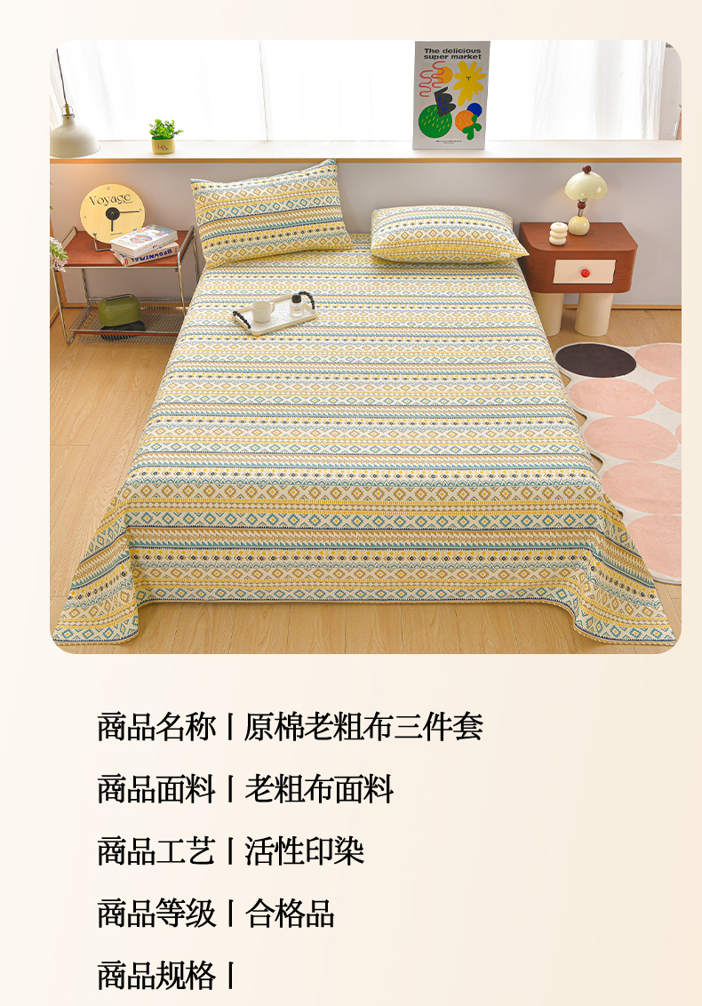 商品名称:(总)曼尼 2026新款亲肤舒适原棉老粗布床单凉席三件套