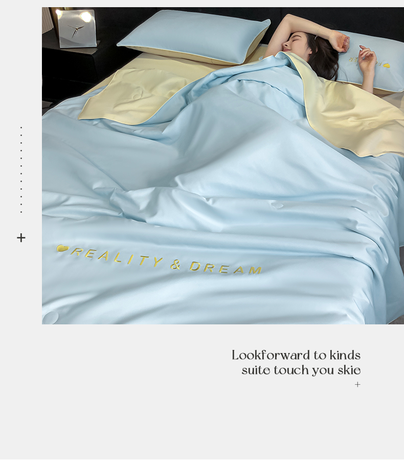 当前位置: 91家纺网 > 商品网购 > 被子 > 夏被 > 吾诺家居 2026新款双拼及羽毛刺绣夏被夏凉被空调被四件套-柔羽 天空蓝-奶黄