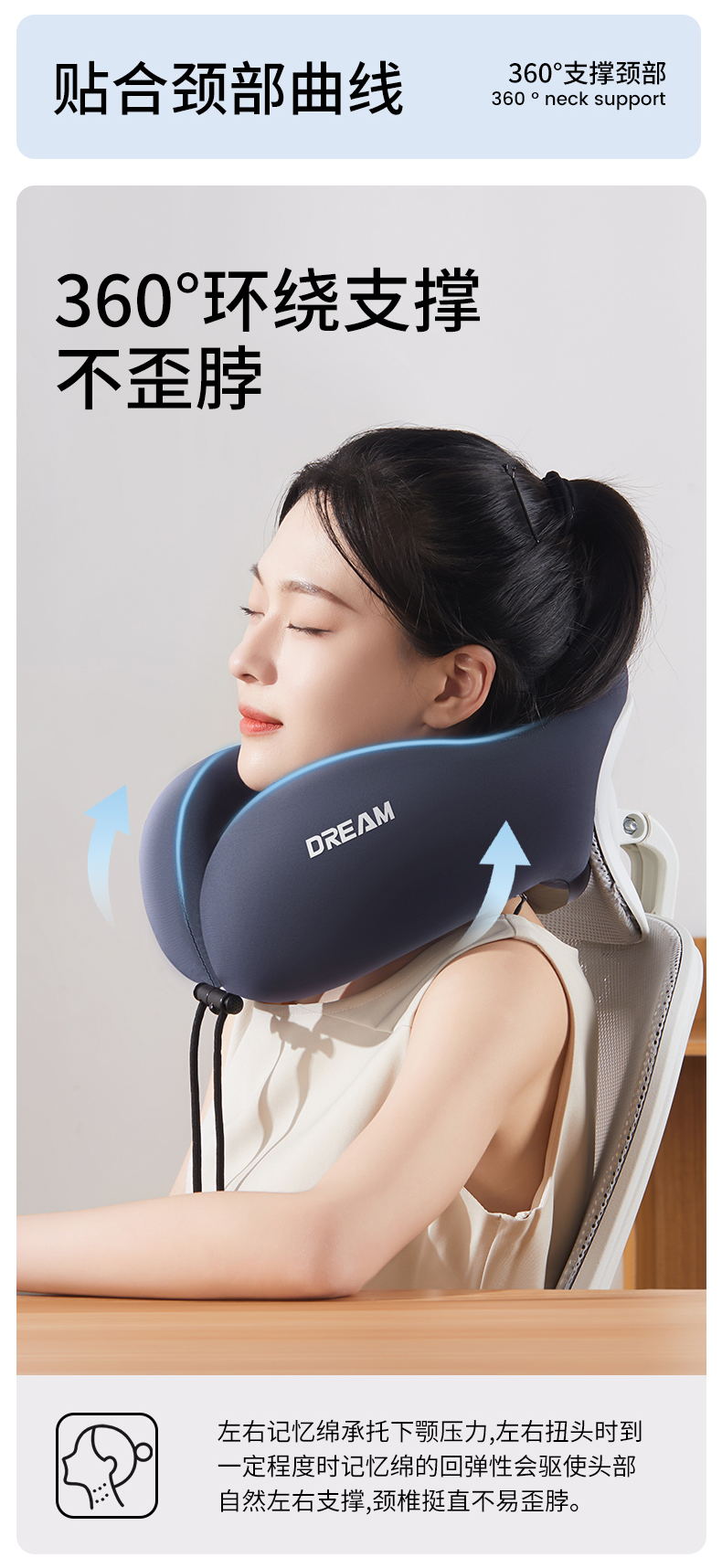 (总)芯辰 2024新款u型护颈枕专用脖套记忆棉飞机枕脖子靠枕学生旅行便携u型枕,粉色,湖蓝色,灰色,柠檬黄