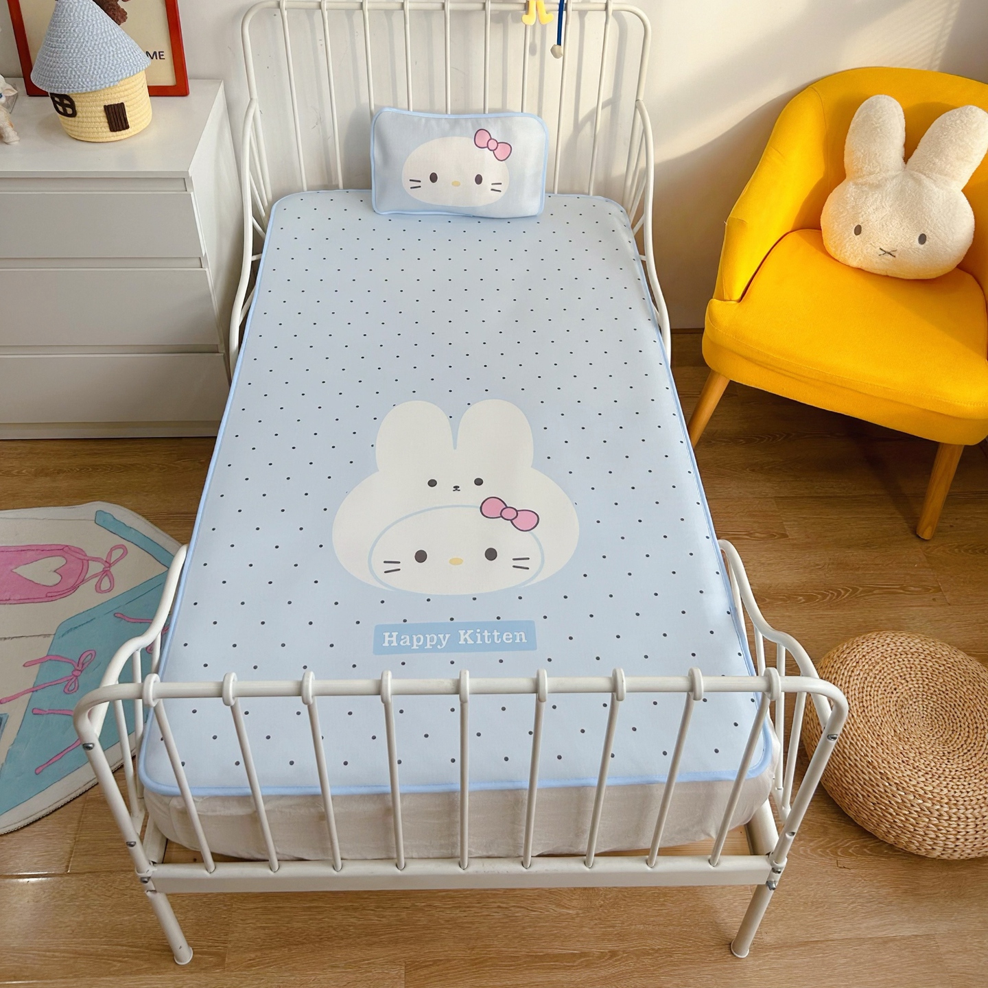 (总)美乐迪家纺 2026新款儿童水光冰丝凉席席子凉席,比熊,冰淇淋小兔,大脸猫,大象,举苹果,梦幻小马,头套小猫,兔头小猫,星星男孩