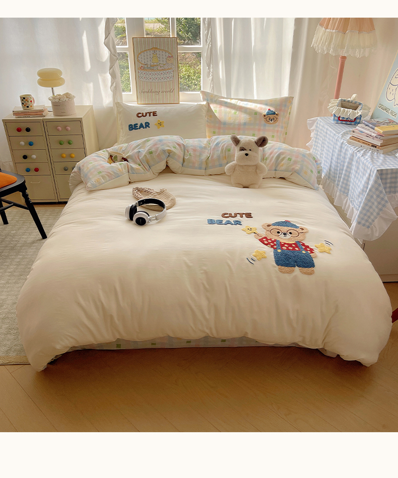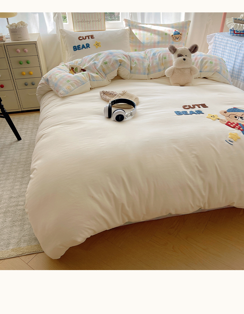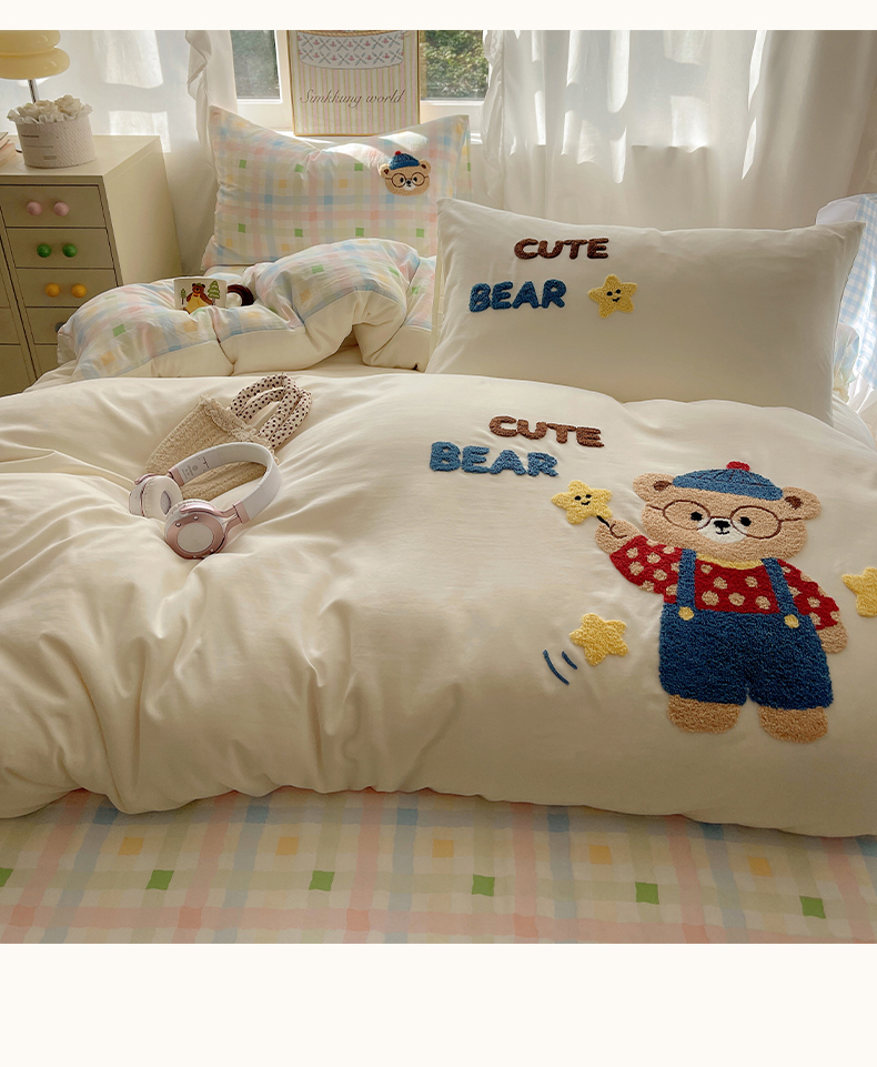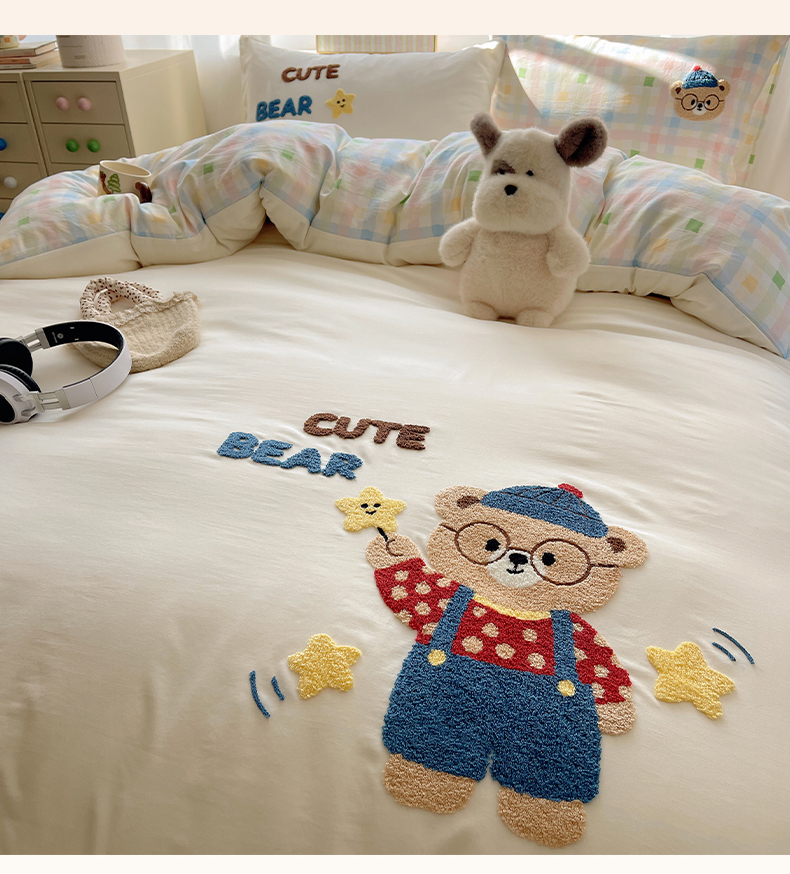 当前位置: 91家纺网 > 商品网购 > 床品套件 > 四件套 > 其它四件套 > 韩都家居 2026春夏新款亲肤舒适毛巾绣四件套(包含买家秀原图) 小熊星星