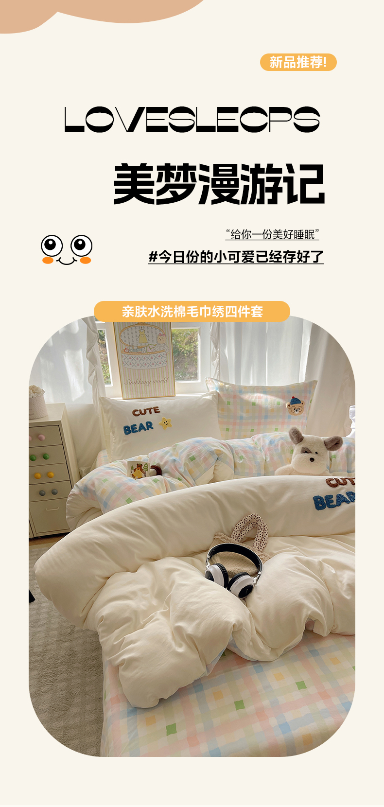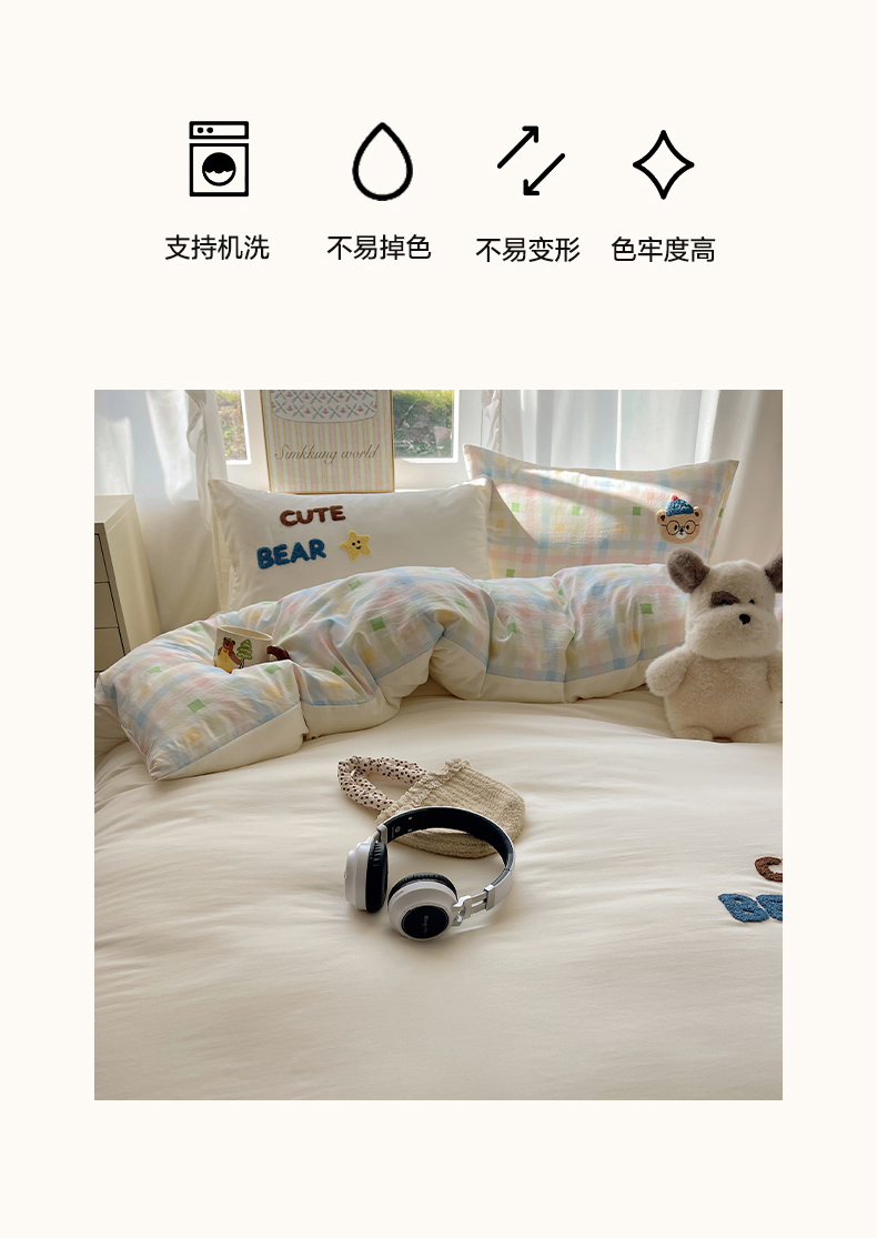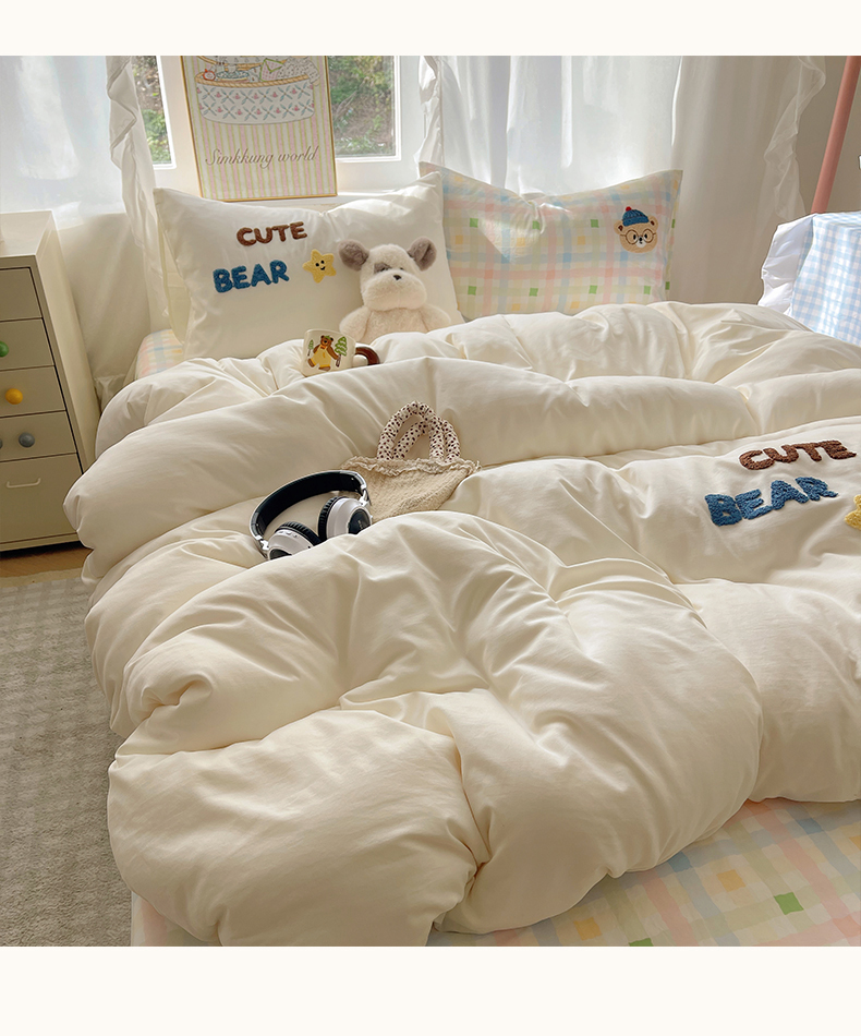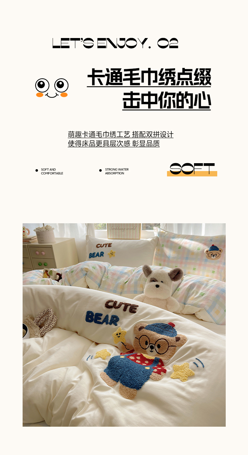 当前位置: 91家纺网 > 商品网购 > 床品套件 > 四件套 > 其它四件套 > 韩都家居 2026春夏新款亲肤舒适毛巾绣四件套(包含买家秀原图) 小熊星星