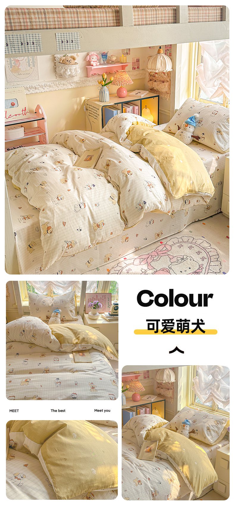 当前位置: 91家纺网 > 商品网购 > 床品套件 > 四件套 > 全棉普通四件套 > 简约家纺 2026新款全棉印花学生宿舍三件套系列 可爱萌犬