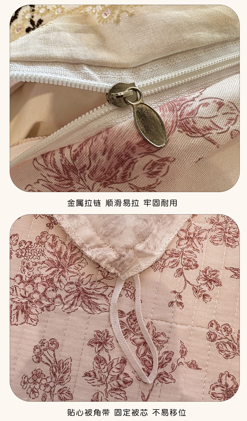 (总)橙子家居 2026新款全棉棉麻绣花被套棉花床盖四件套,棉麻-本色,棉麻-粉色,棉麻-咖色,棉麻-绿色