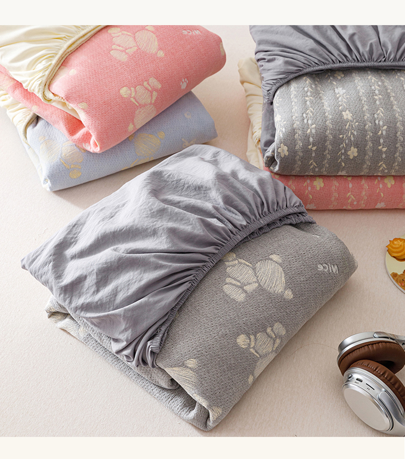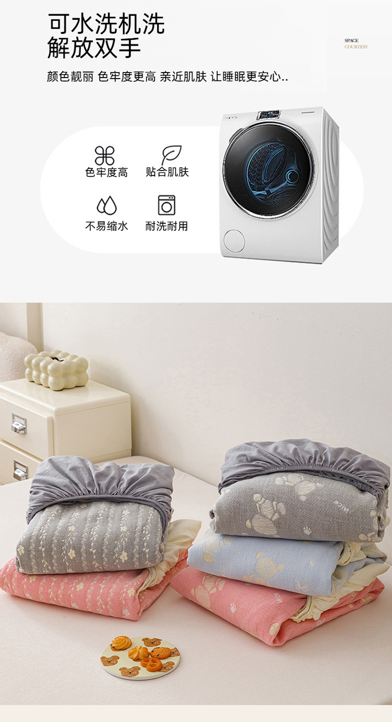(总)悦然毛巾被 2026新款水洗三层纱布全棉床笠套件床单夹棉床罩A类单床笠床笠单件