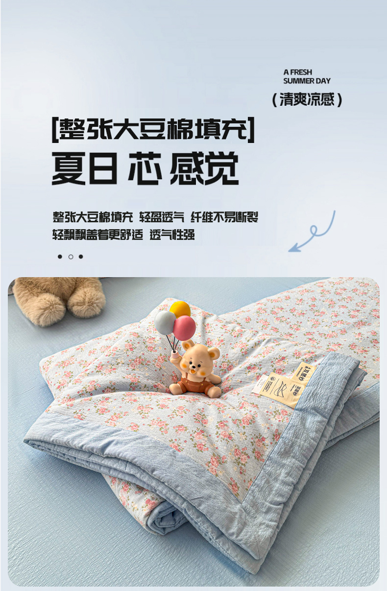 (总)蓝冰家纺 2026新款a类泡芙双层纱大豆夏被夏凉被空调被夏被四件套,泡芙-花开富贵,泡芙-红樱桃,泡芙-花枝招展,泡芙-魔法星星人,泡芙-莫奈花紫,泡芙-童趣木马,泡芙-心之韵律,泡芙-happy狗