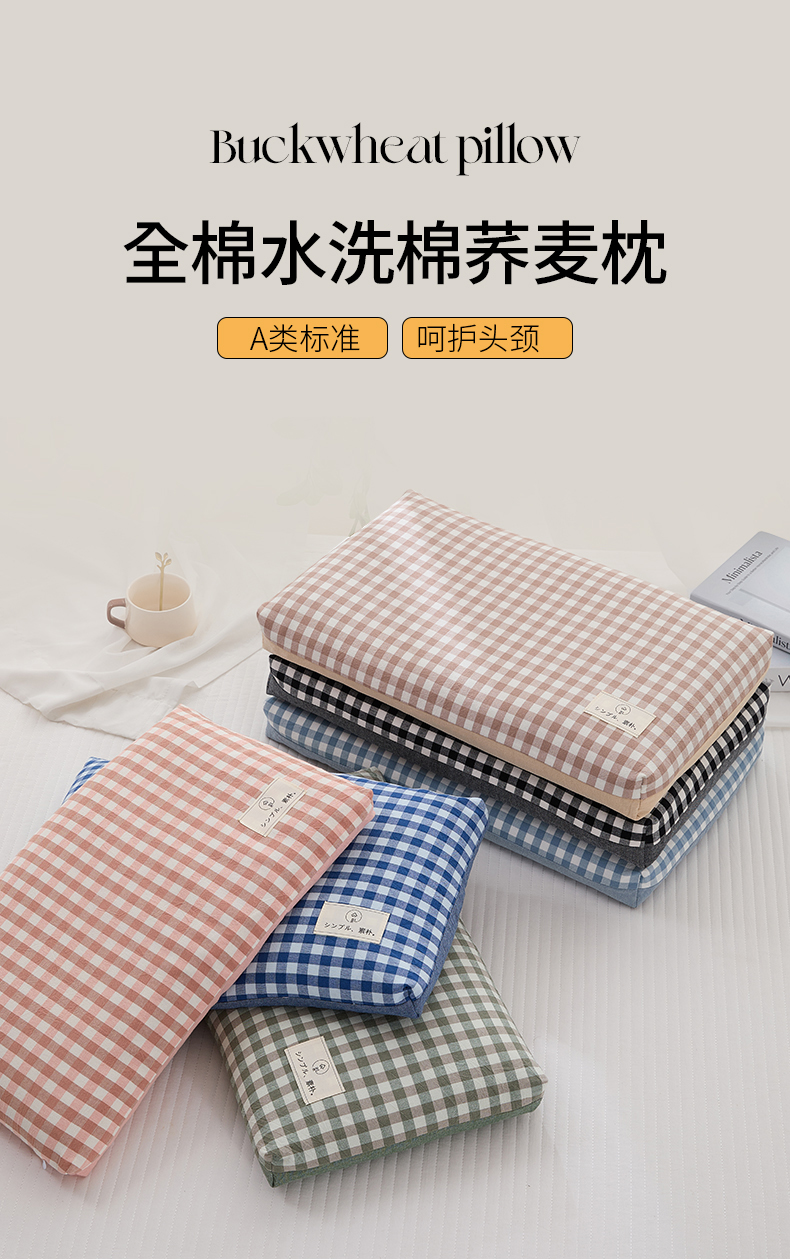 (总)仁宇枕业 2026新款全棉纯棉色织水洗棉良品双拼格子儿童成人全荞麦枕头枕芯