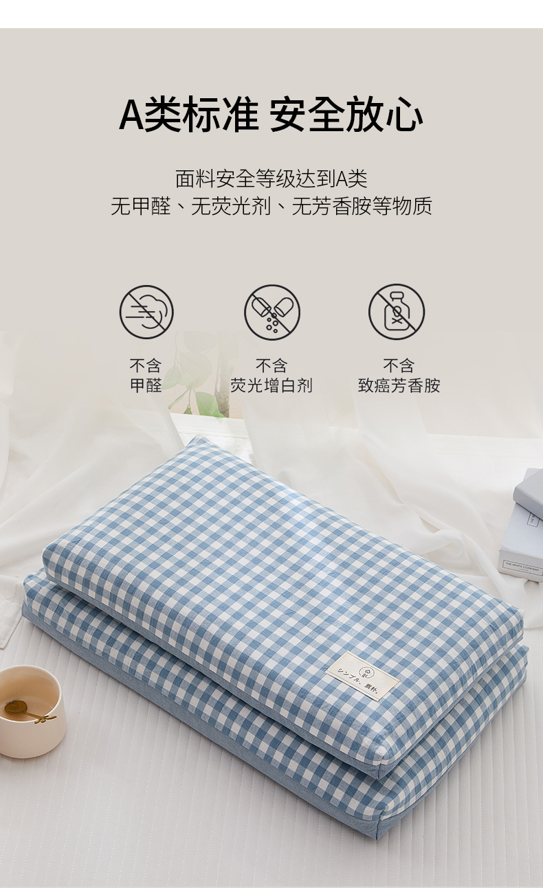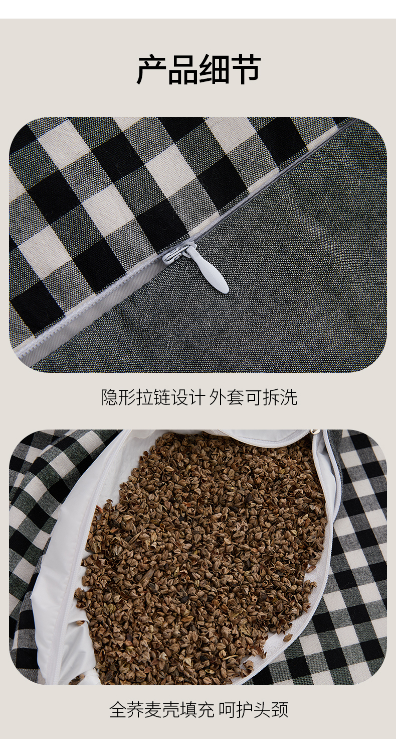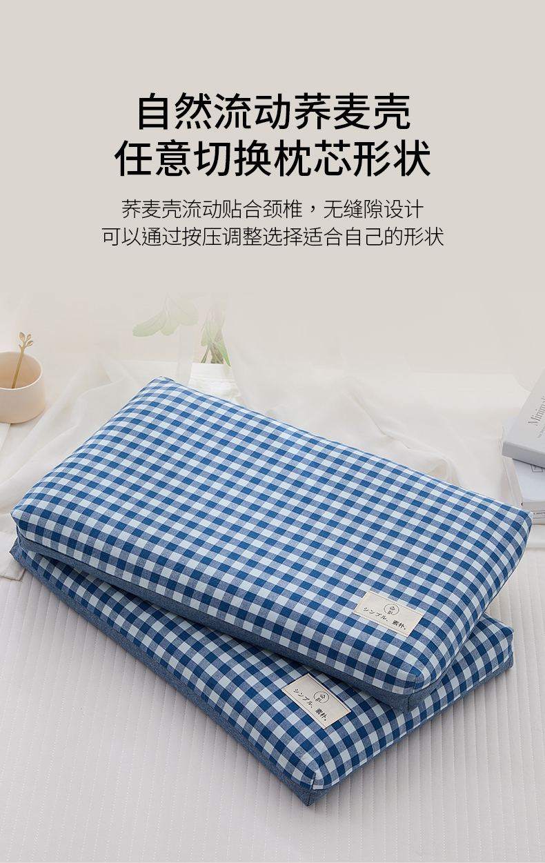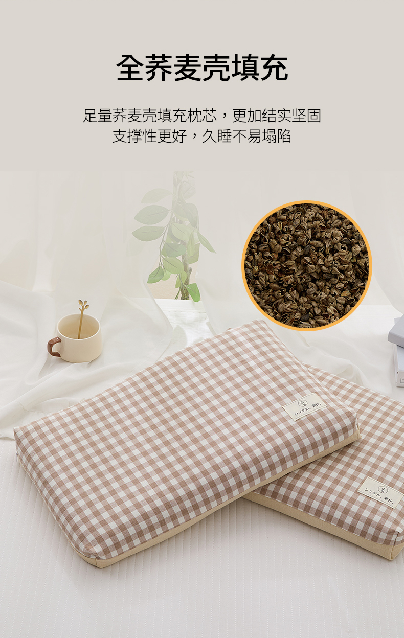 商品名称:(总)仁宇枕业 2026新款全棉纯棉色织水洗棉良品双拼格子儿童成人全荞麦枕头枕芯