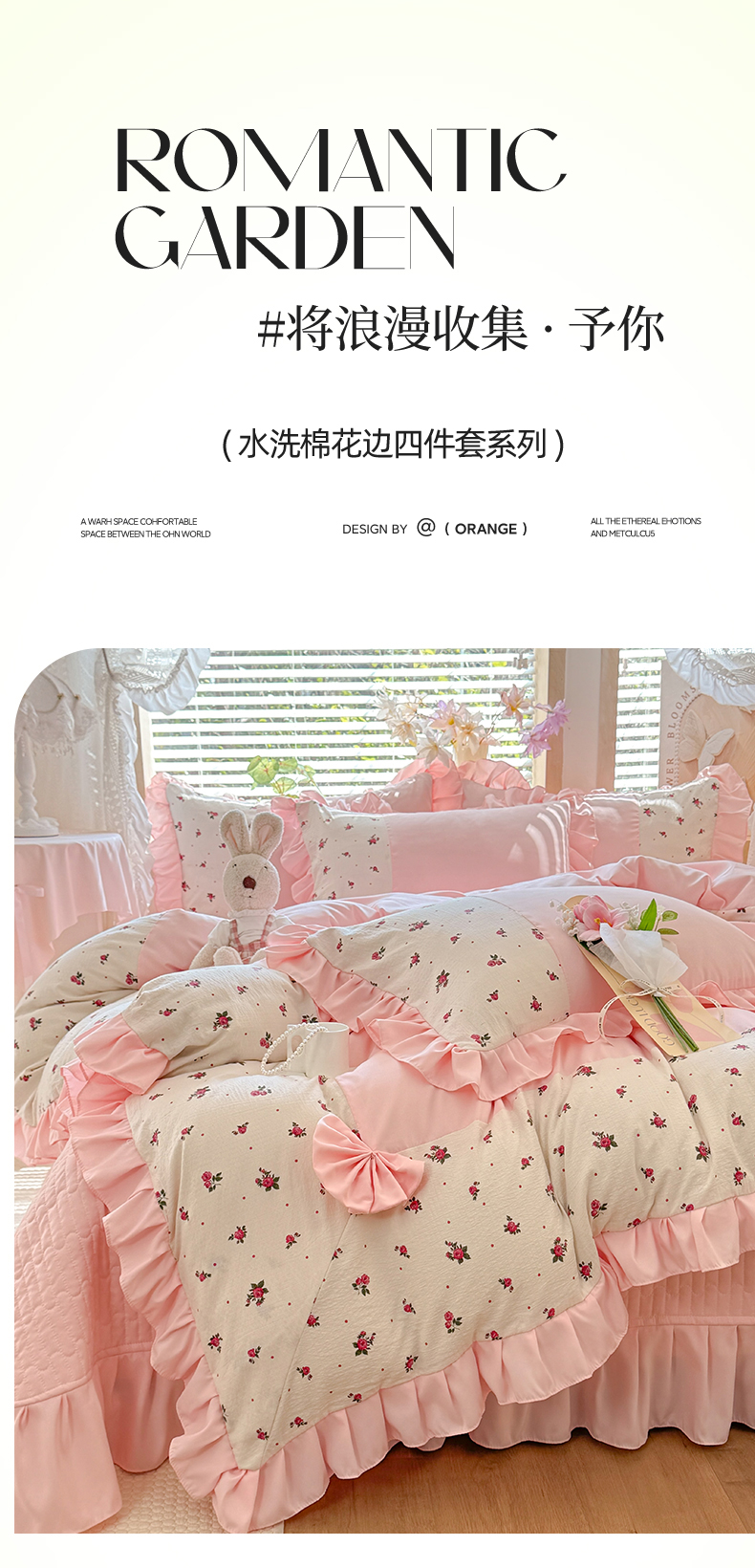 (总)唐人居 2026春夏新款皱皱水洗棉花边床盖四件套,安妮,半亩花田,宝格丽曼,彩色波点,初见,繁花,芬德拉,花影,卡地,玫瑰园,柔心花影,幸运小马,音乐派对,音乐企鹅