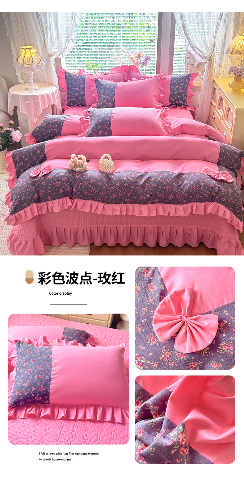 (总)唐人居 2026新款水洗棉花边床盖四件套-彩色波点,彩色波点-紫,彩色波点-豆沙,彩色波点-粉,彩色波点-灰,彩色波点-绿,彩色波点-玫红