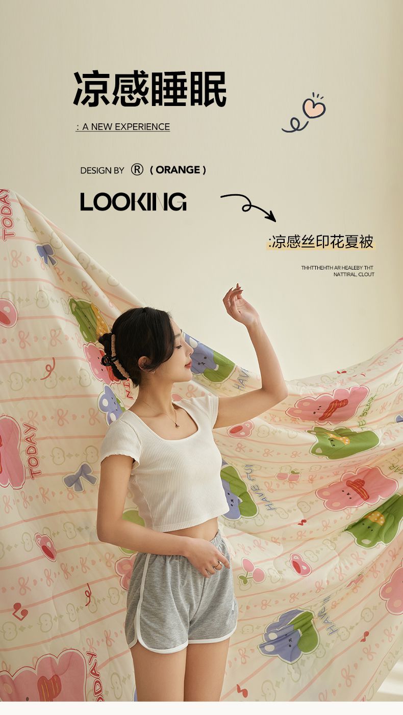 (总)畅销被业 2026新款卡通印花跨境外贸有氨凉感丝冰淇淋夏凉被空调被,莫奈花园,郁金香,顶呱呱,格子狗,国色天香,果味熊,蝴蝶粉,绿风铃,小飞熊,小南瓜,小碎花,银杏叶