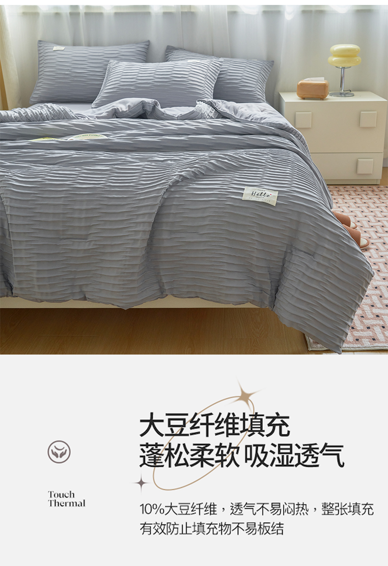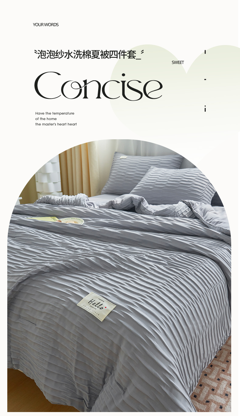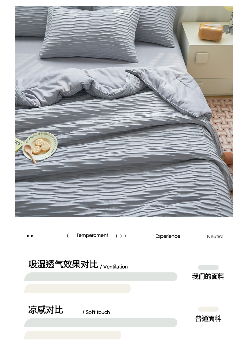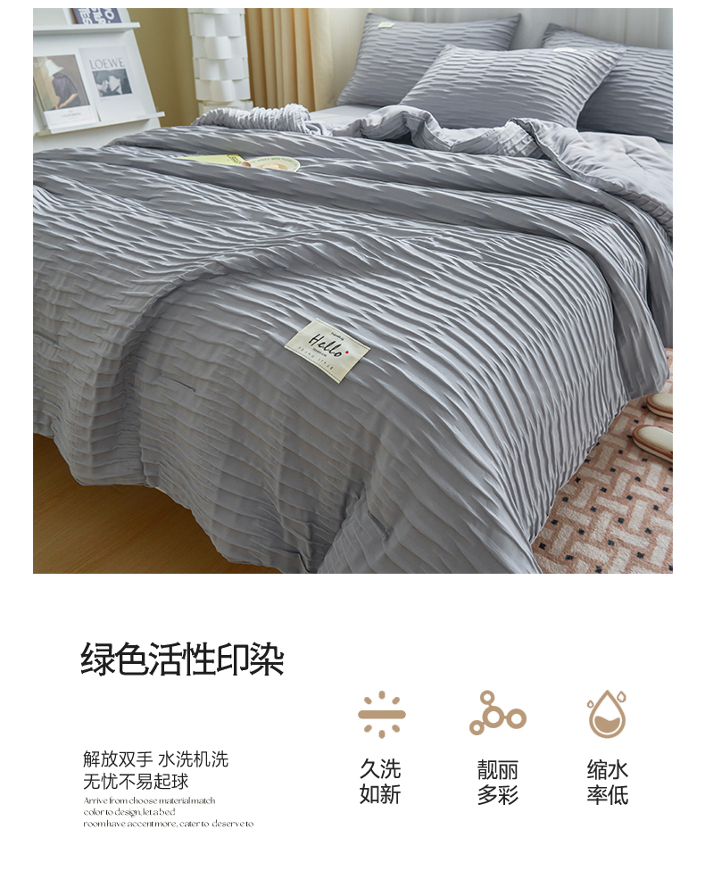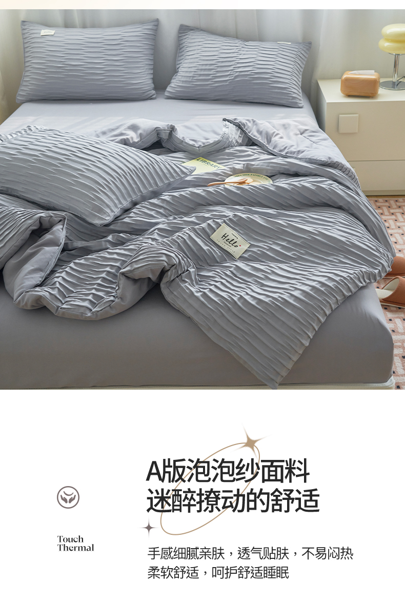 商品名称:畅销被业 2026新款泡泡纱水洗棉夏被四件套 被子被芯 泡泡纱-情调灰