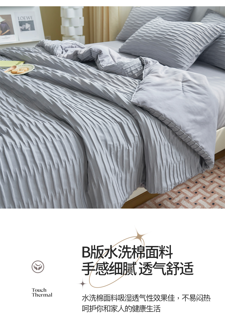 畅销被业 2026新款泡泡纱水洗棉夏被四件套 被子被芯 泡泡纱-情调灰