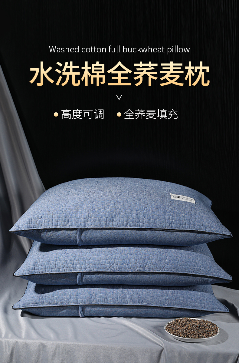 (总)仁宇枕业 2026新款全棉纯棉极简系列水洗棉全荞麦枕头枕芯