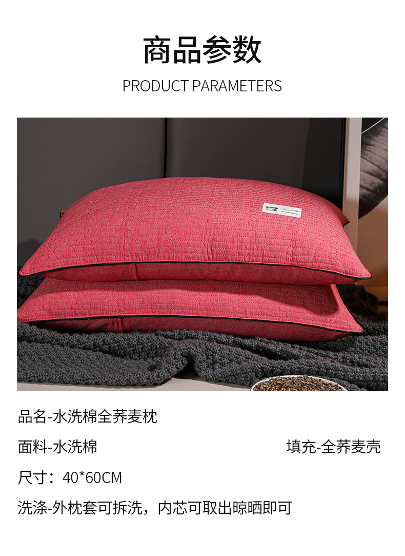 商品名称:(总)仁宇枕业 2026新款全棉纯棉极简系列水洗棉全荞麦枕头枕芯