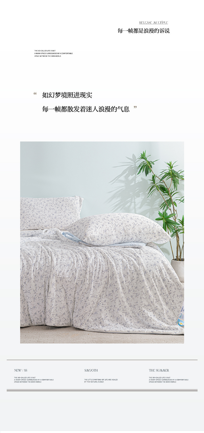 苏羿家纺 2026春夏新款A类踩棉工艺凉感丝印花夏被夏凉被空调被 夏礼
