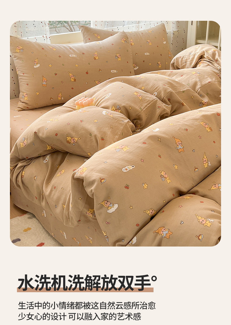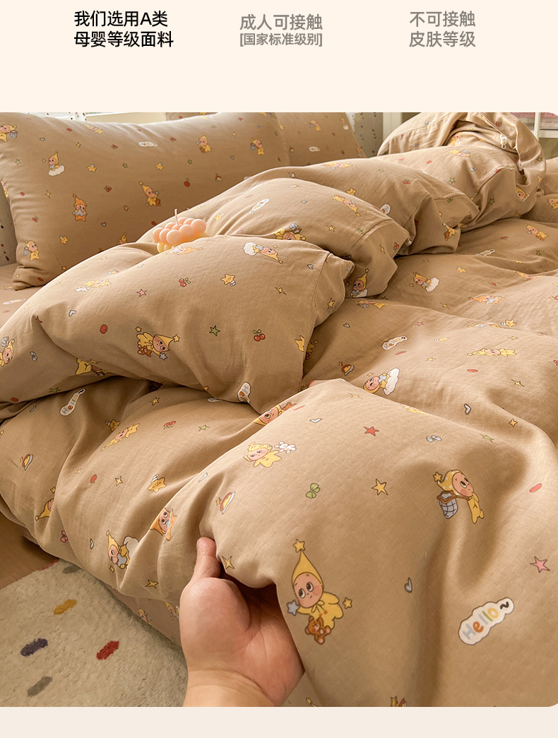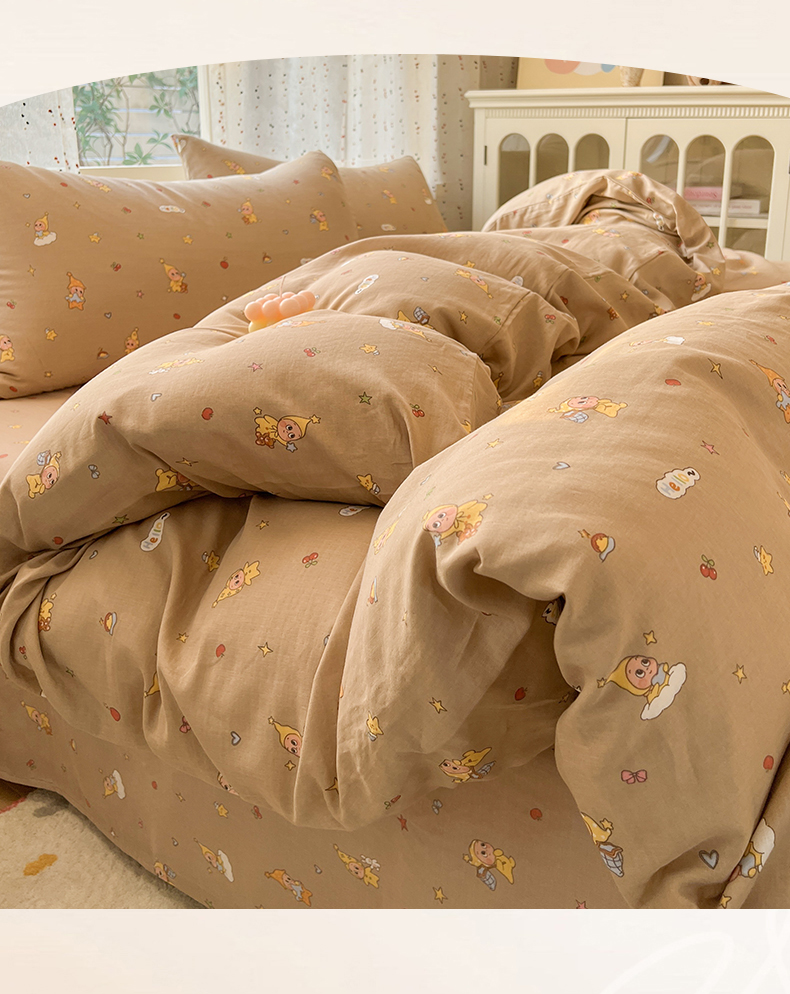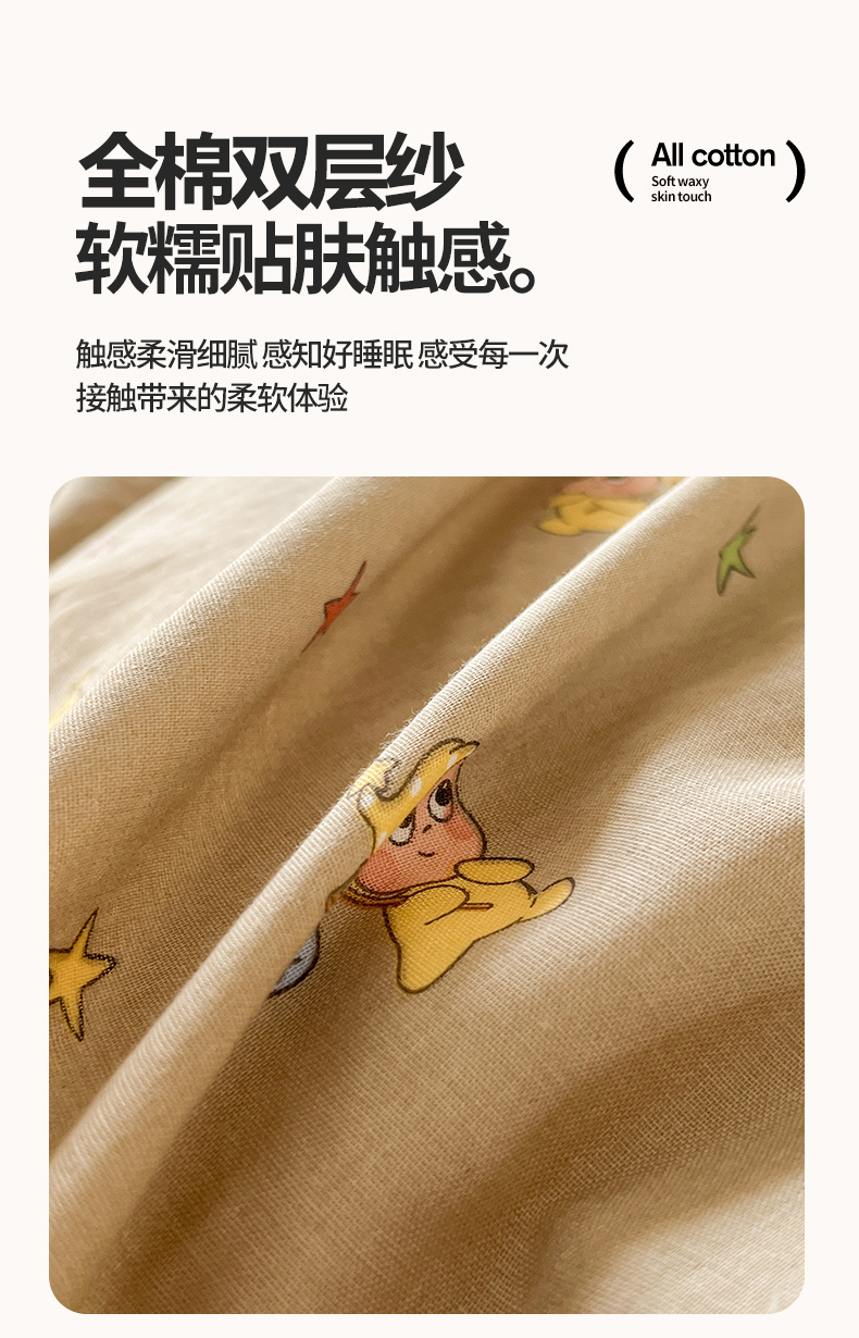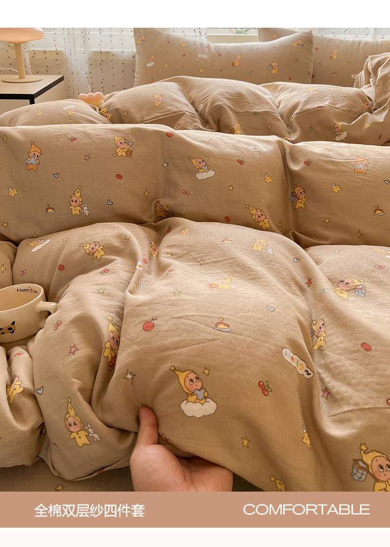 当前位置: 91家纺网 > 商品网购 > 床品套件 > 四件套 > 全棉普通四件套 > 感遇家纺 2026新款A类全棉有氧双层纱卡通四件套 星星人咖
