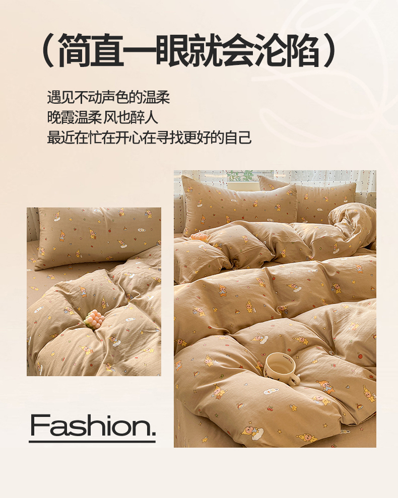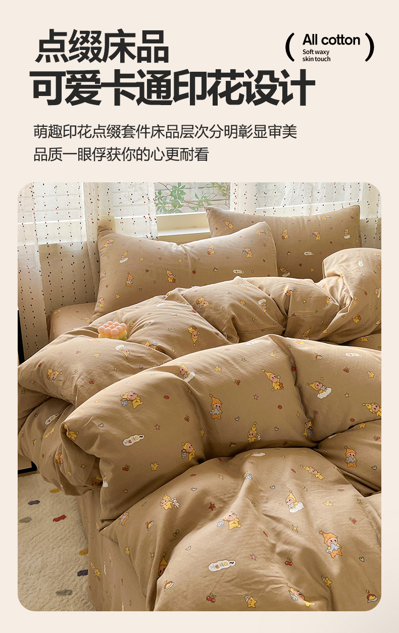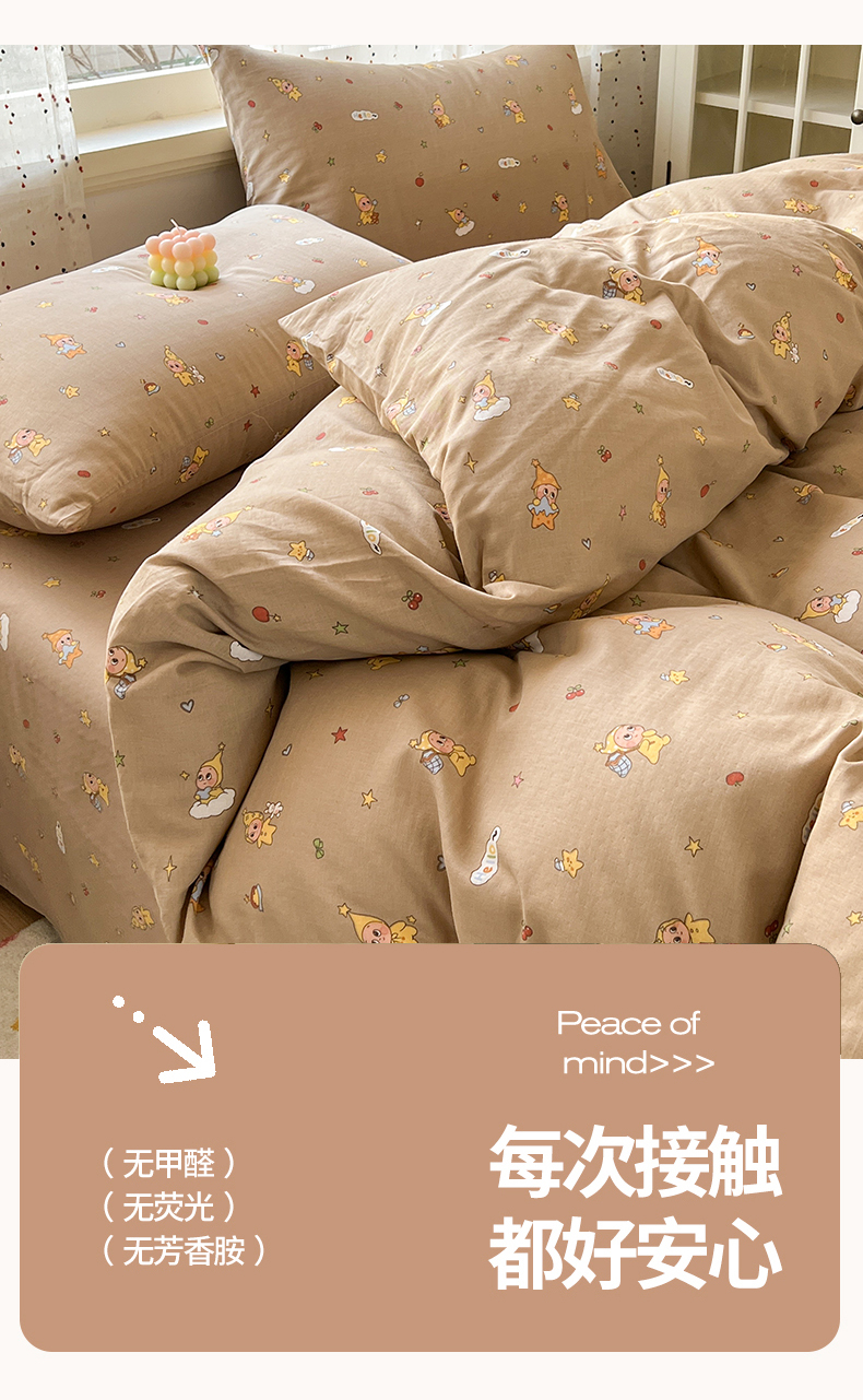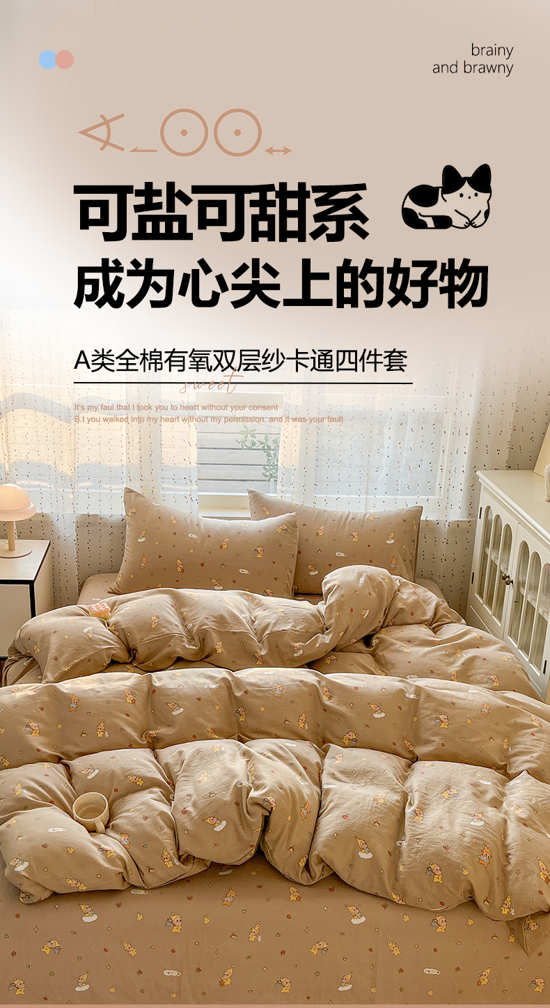 当前位置: 91家纺网 > 商品网购 > 床品套件 > 四件套 > 全棉普通四件套 > 感遇家纺 2026新款A类全棉有氧双层纱卡通四件套 星星人咖