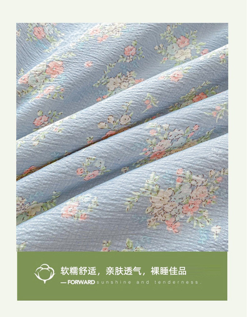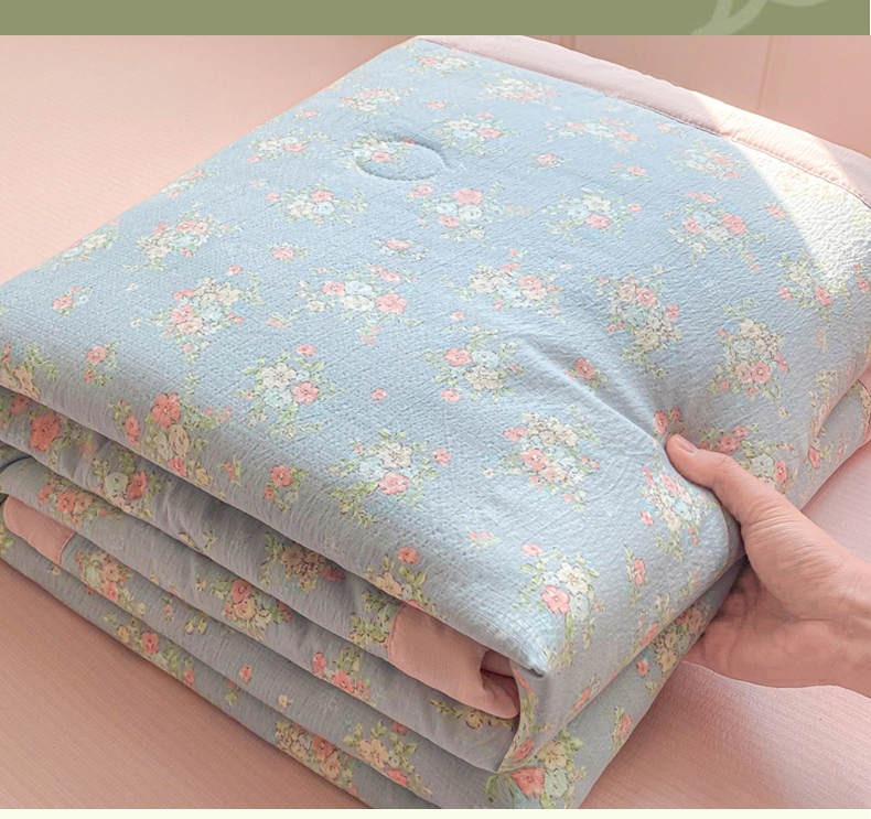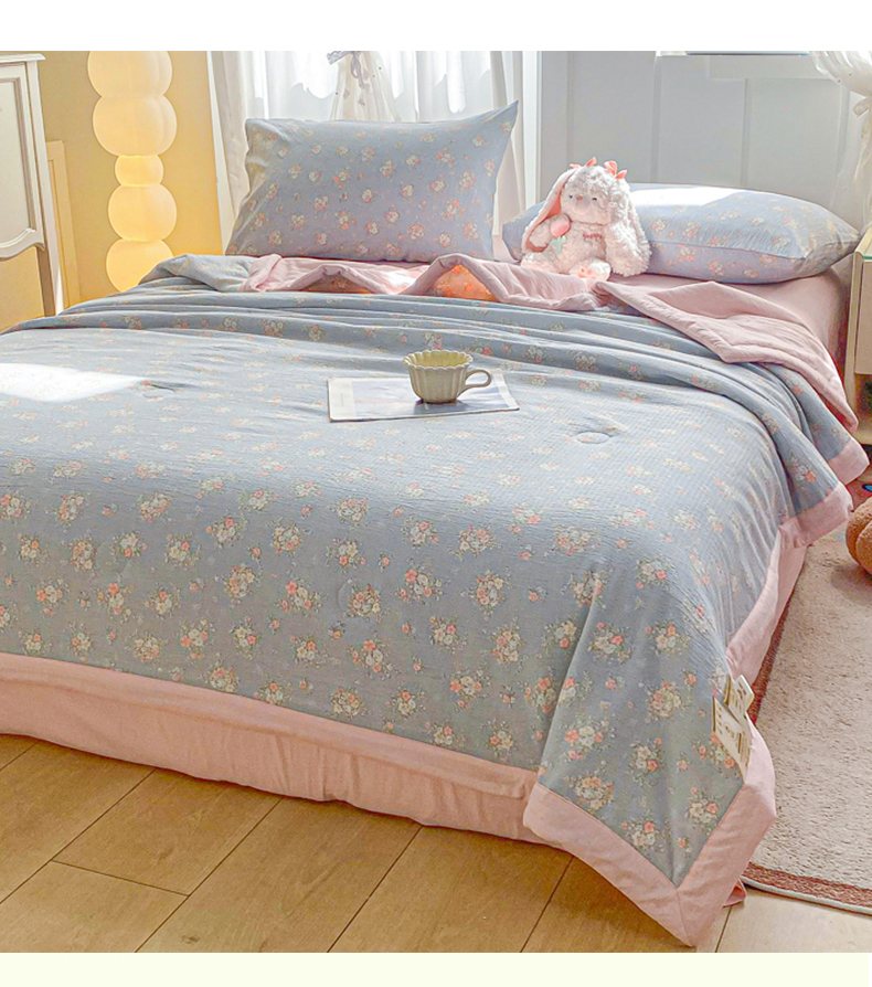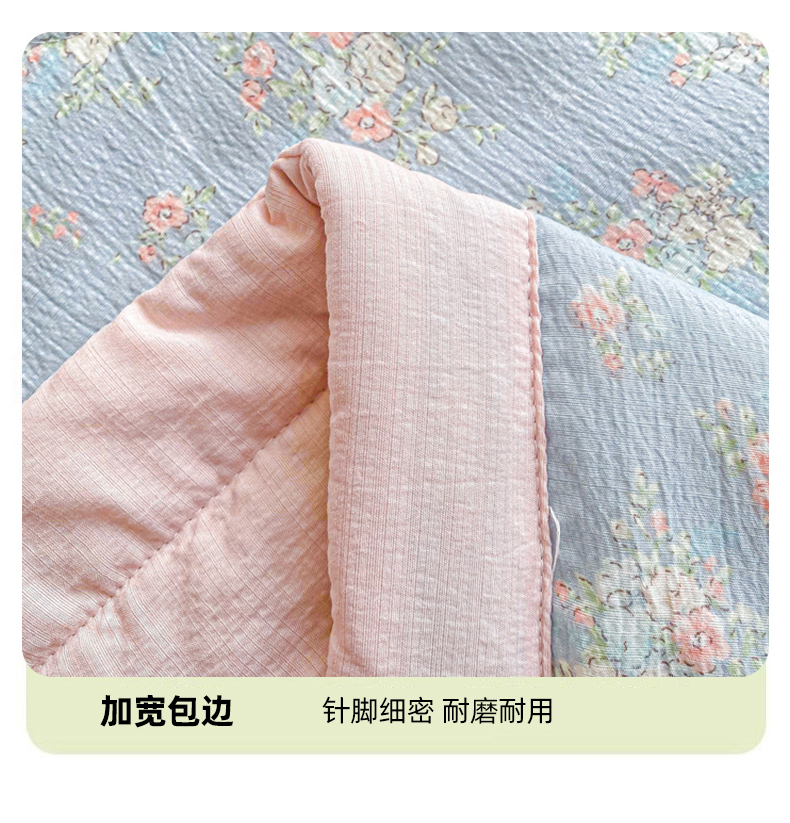商品名称:爱屋及屋 2026春夏新款小清新双层纱宽包边棉花夏被夏凉被空调被 繁花-蓝