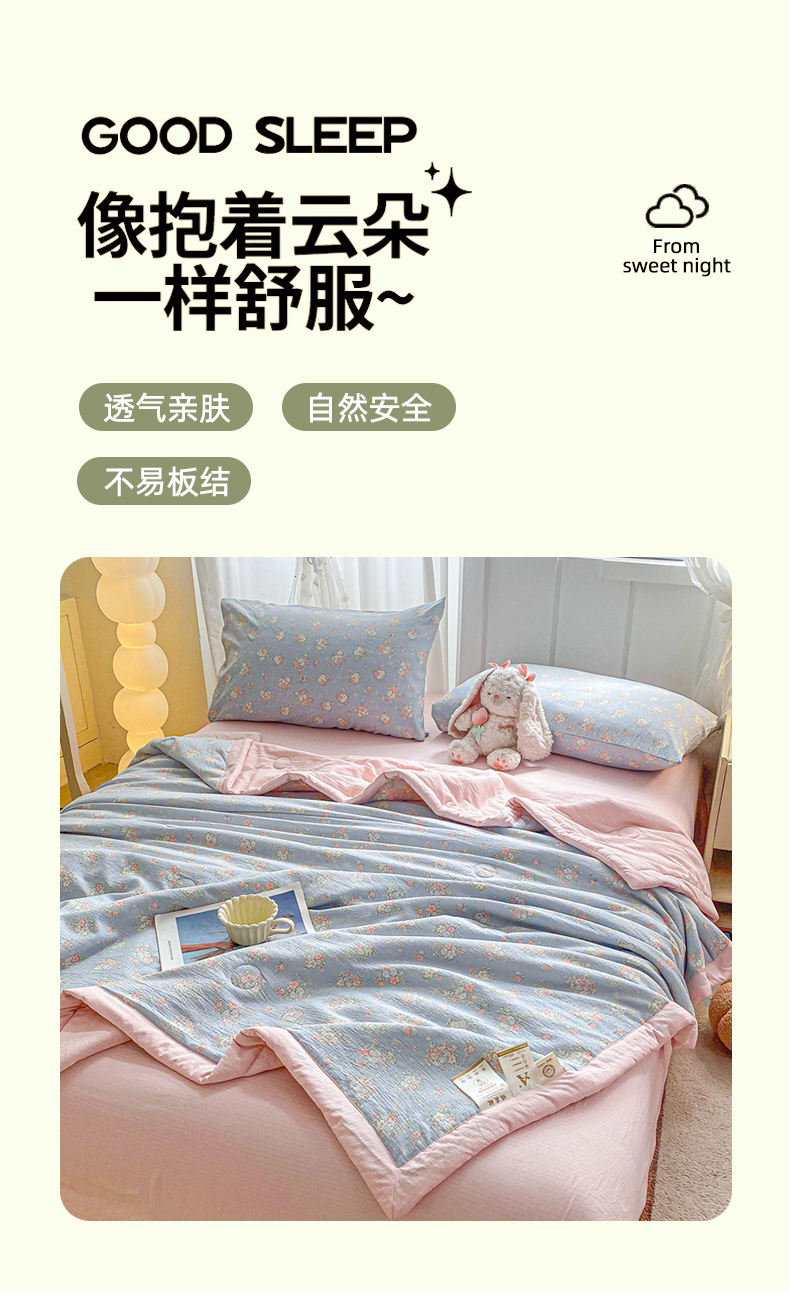 (总)爱屋及屋 2026春夏新款小清新双层纱宽包边棉花夏被夏凉被空调被,春日小猫,动感星星,繁花-蓝,花影,花之兔,蓝点点,蓝色小丫,萌宠集,奶油块块,苹果猫,像素KT,小熊猫,星星小马,云感-蓝,治愈小猫