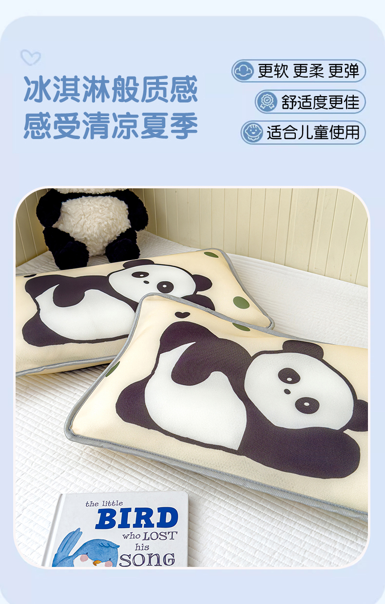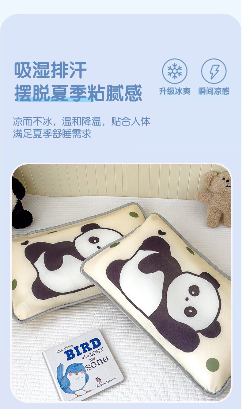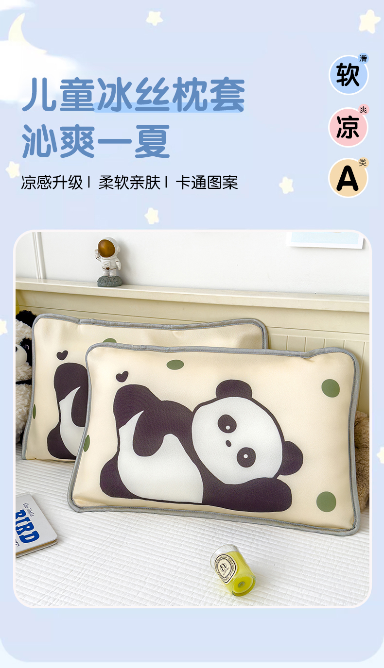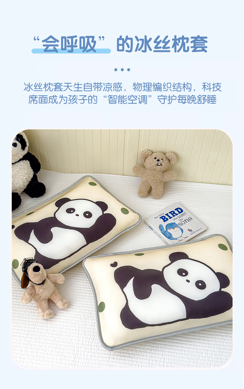 丽美人家纺 2026新款柔软亲肤儿童冰丝枕套 安逸熊猫