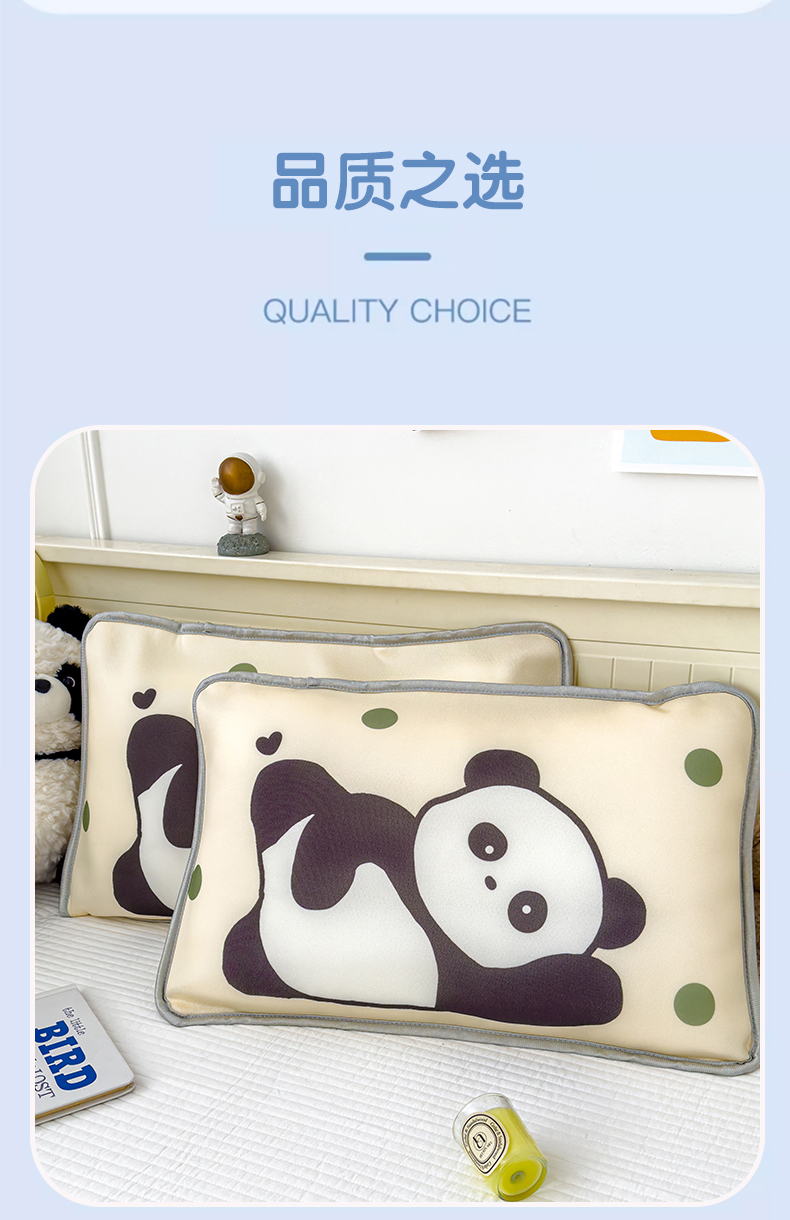 • 91家纺网 家纺一手货源 找家纺 丽美人家纺 2026新款柔软亲肤儿童冰丝枕套 安逸熊猫