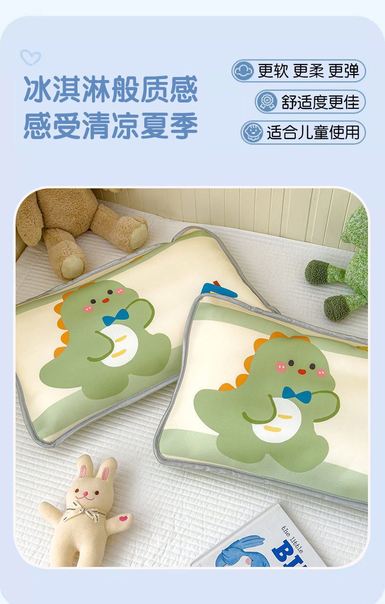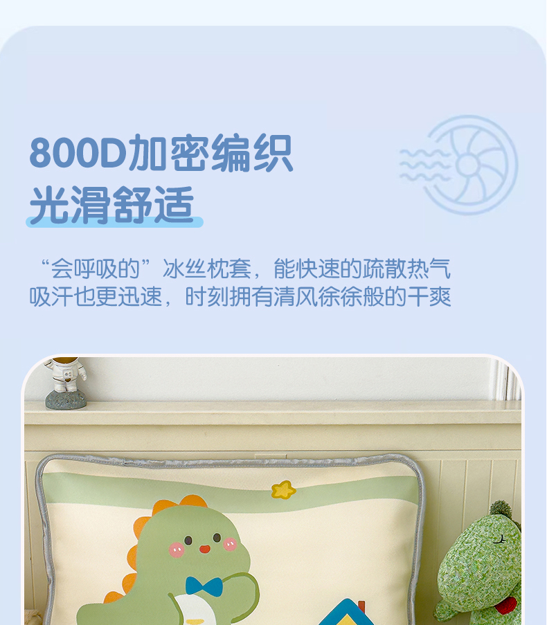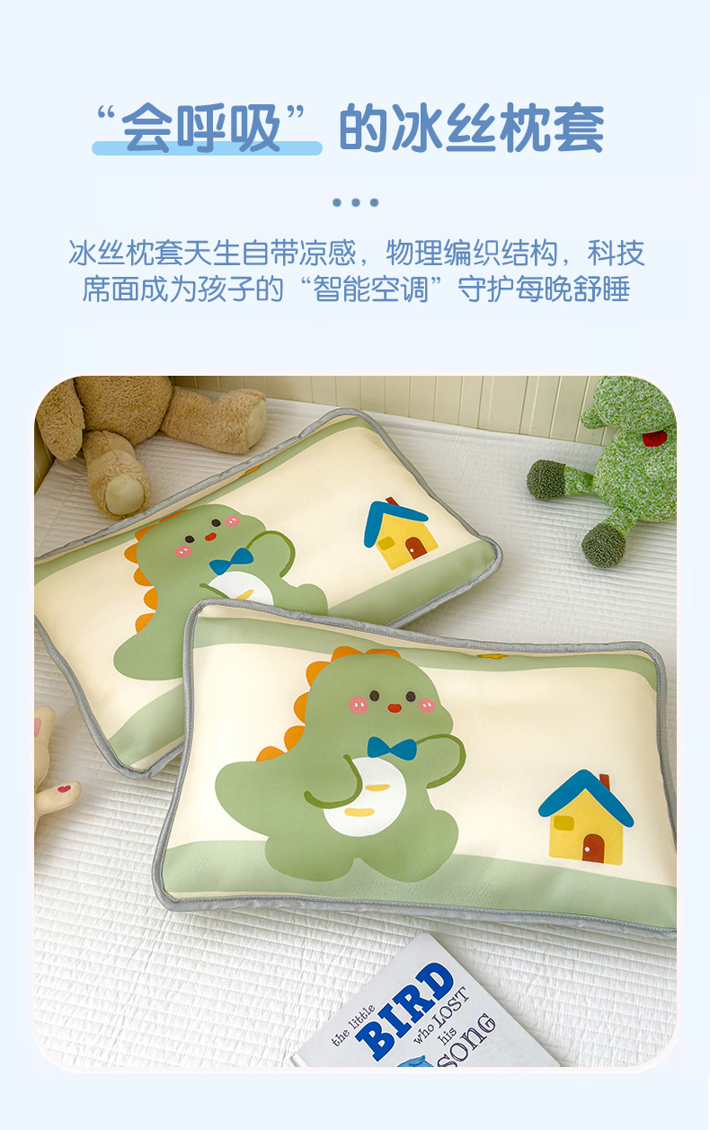 丽美人家纺 2026新款柔软亲肤儿童冰丝枕套 恐龙屋