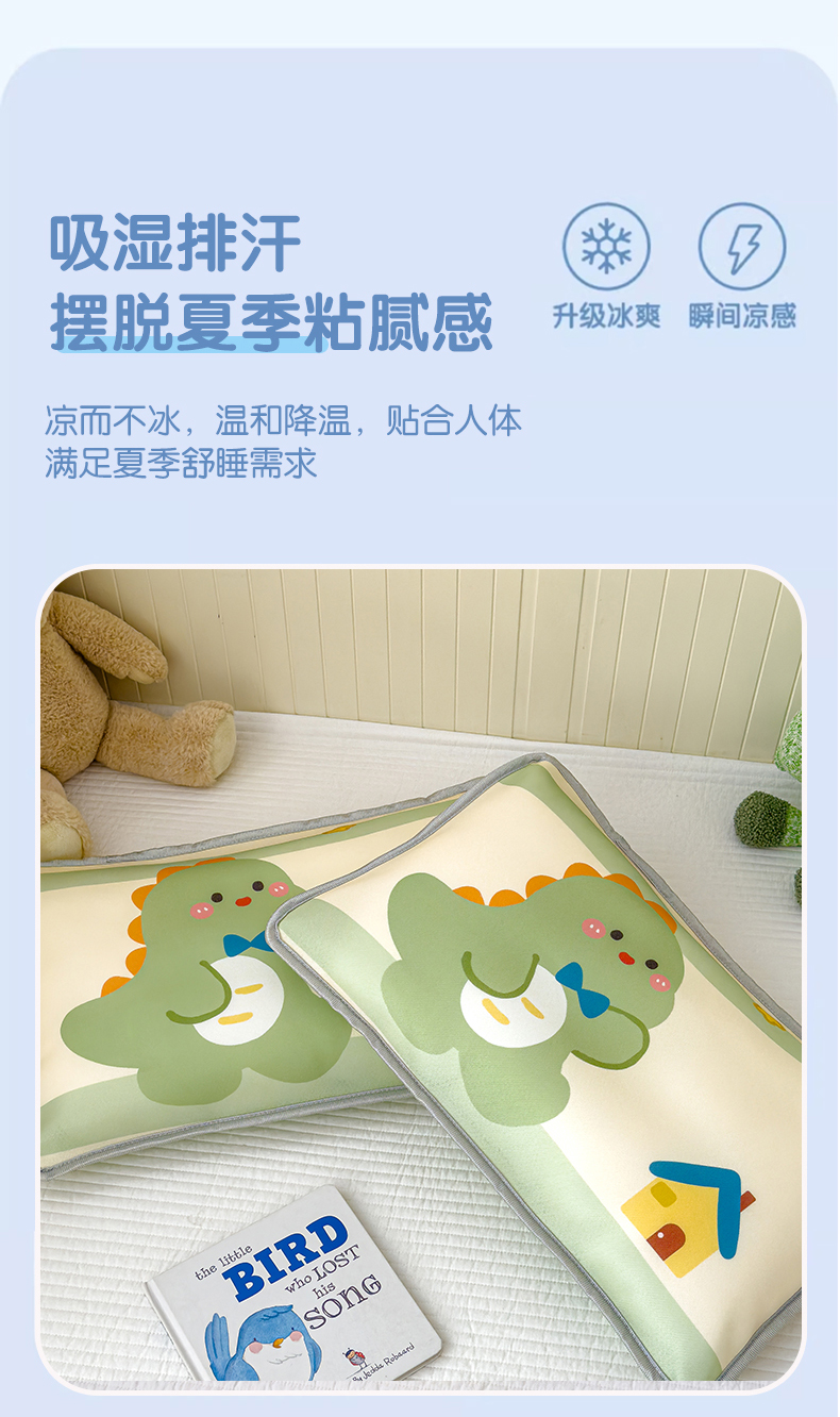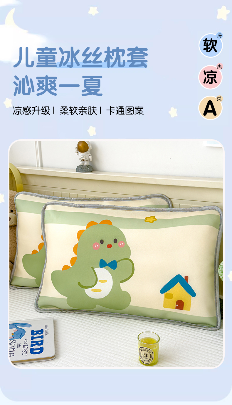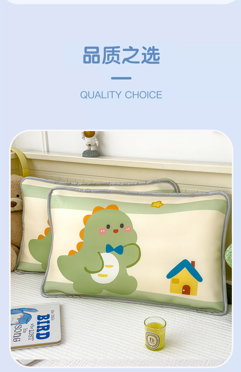 • 91家纺网 家纺一手货源 找家纺 丽美人家纺 2026新款柔软亲肤儿童冰丝枕套 恐龙屋