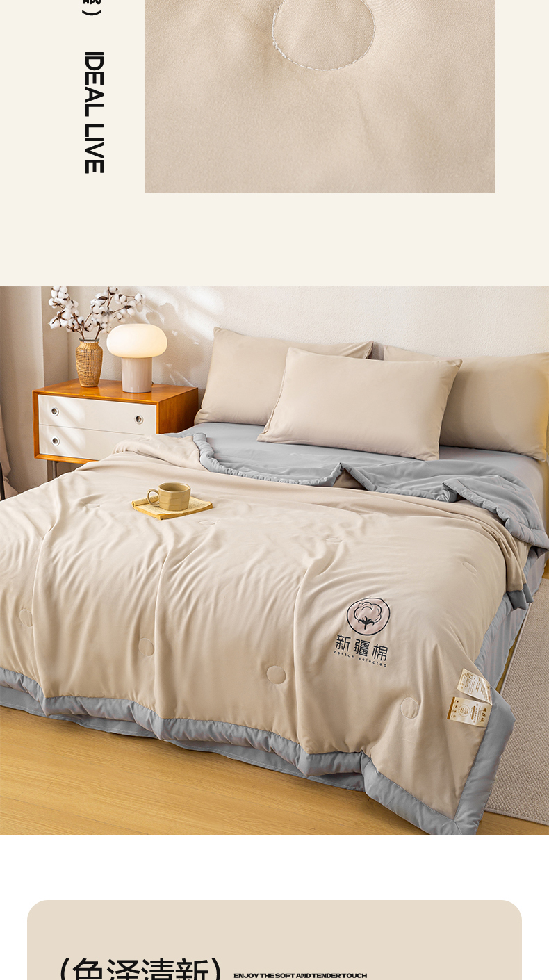 (总)憨豆 2026新款撞色双拼新疆棉花被夏被无印风水洗棉空调被夏凉被子(常年有货),棉朵-果绿白,棉朵-简约灰,棉朵-卡其白,棉朵-卡其灰,棉朵-蓝白,棉朵-蓝灰,棉朵-抹茶灰,棉朵-浅粉白,棉朵-浅灰白,棉朵-蔷薇灰