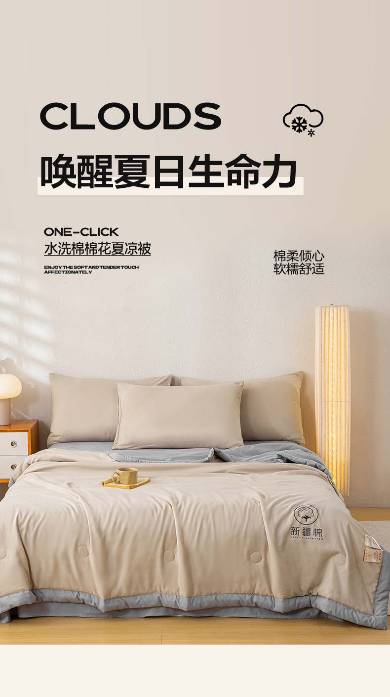 商品名称:憨豆家纺 2026春夏新款 水洗棉纯色双拼棉花被夏凉被空调被(常年有货款) 棉朵-卡其灰