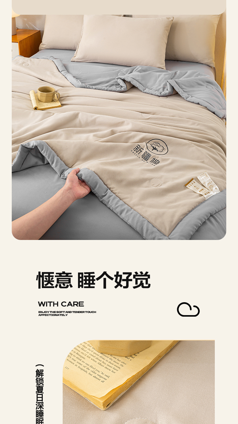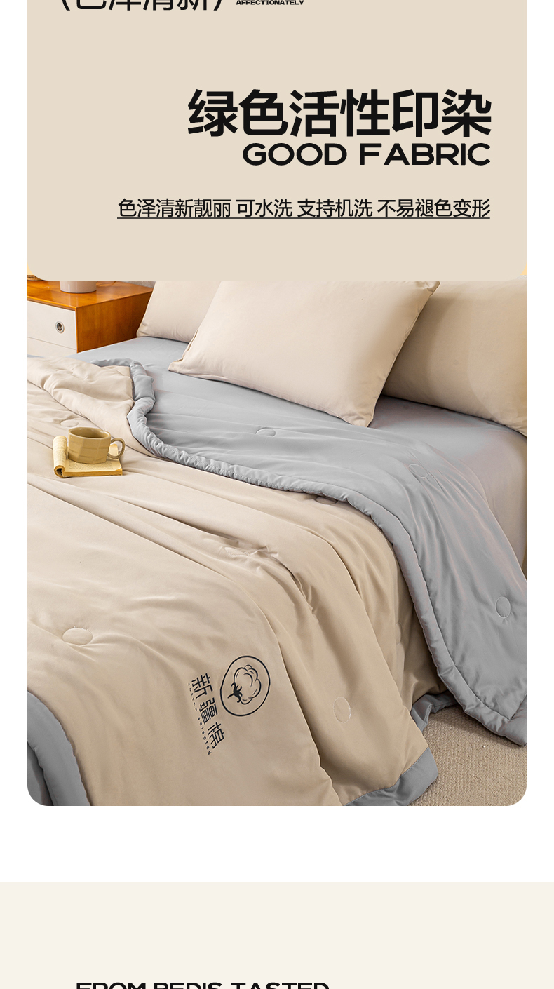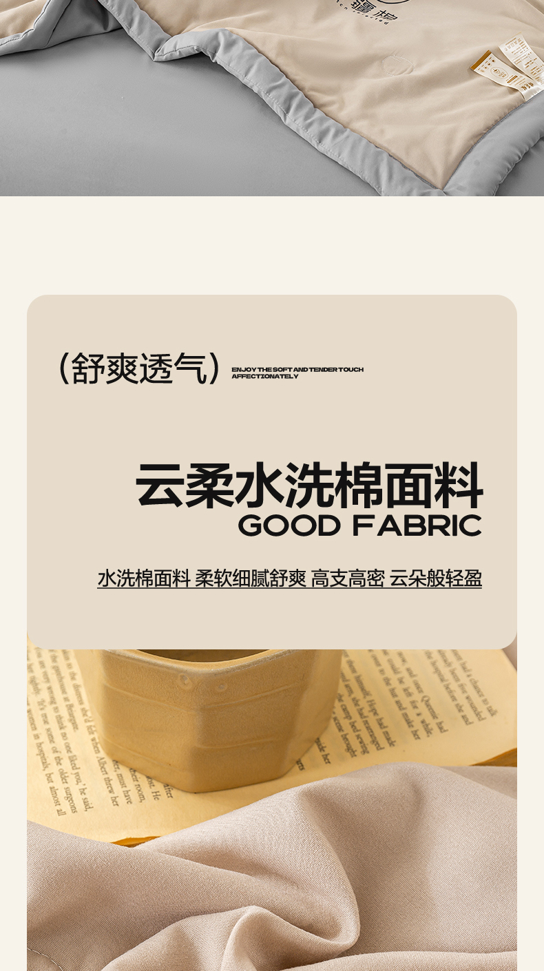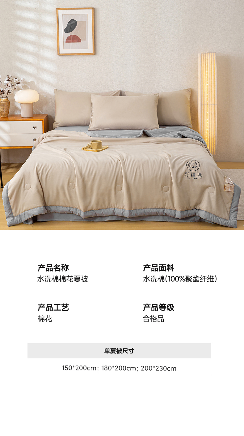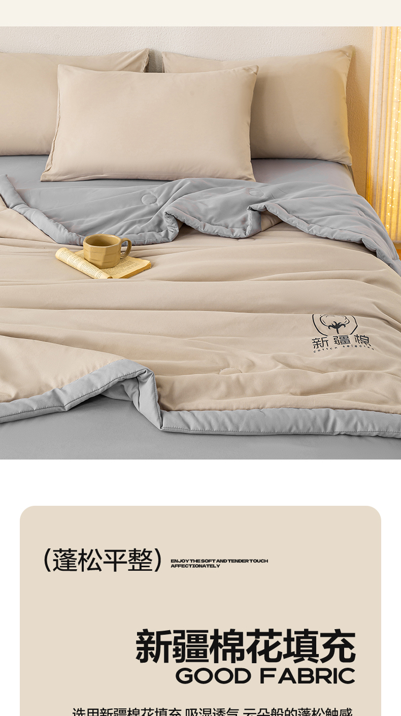 憨豆家纺 2026春夏新款 水洗棉纯色双拼棉花被夏凉被空调被(常年有货款) 棉朵-卡其灰
