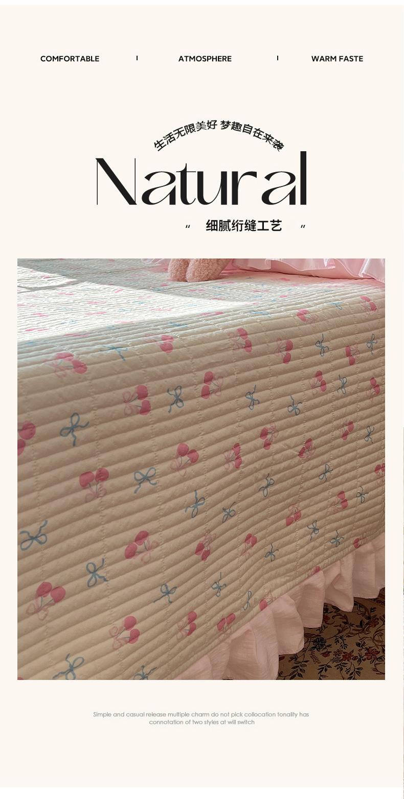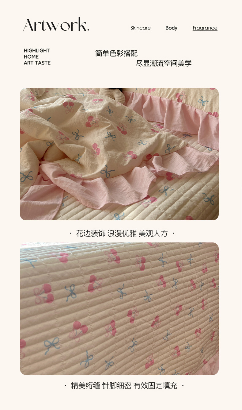 繁花家居 2026新款木棉泡芙感超糯叽叽花边床盖夏被四件套 殷桃结语
