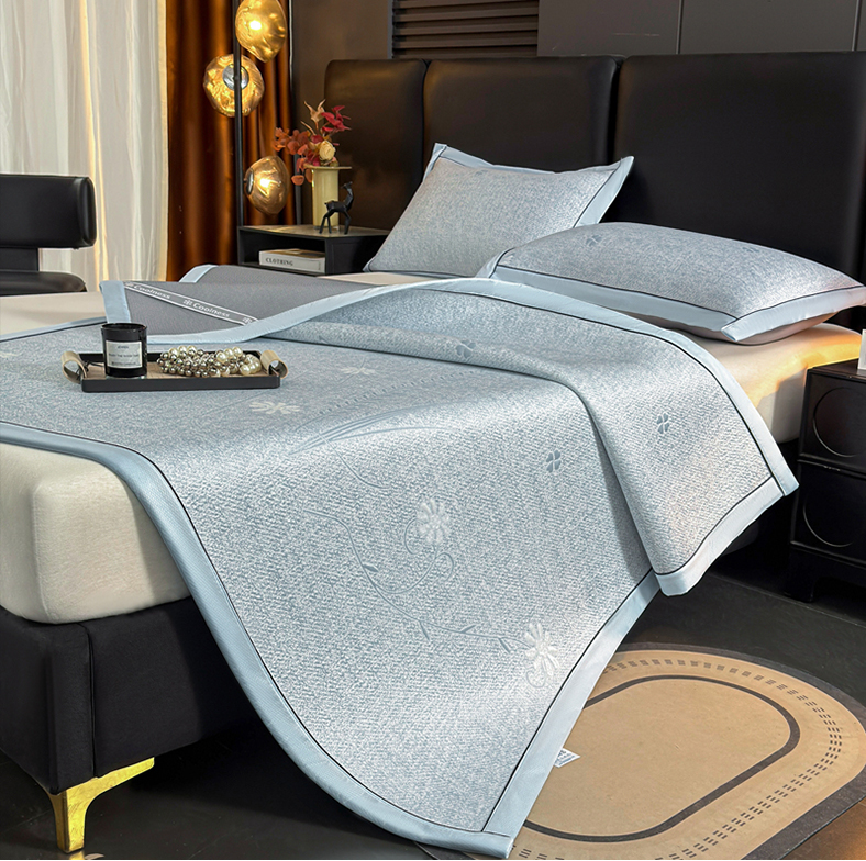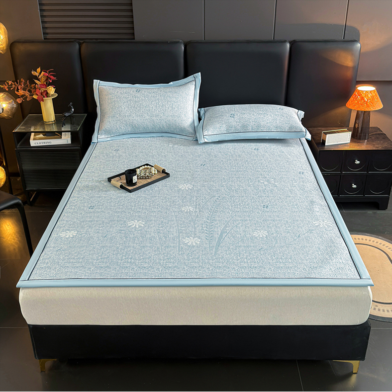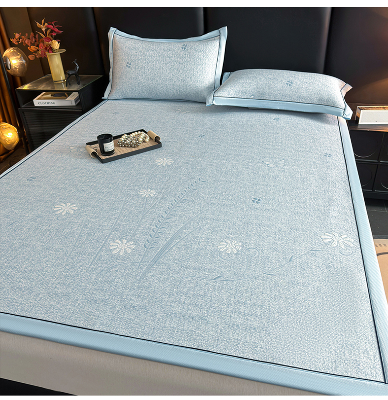 牵梦萦家纺 2026新款立体浮雕压花工艺豆豆凉席三件套-平铺款 彩蝶-蓝
