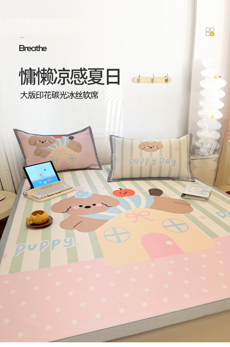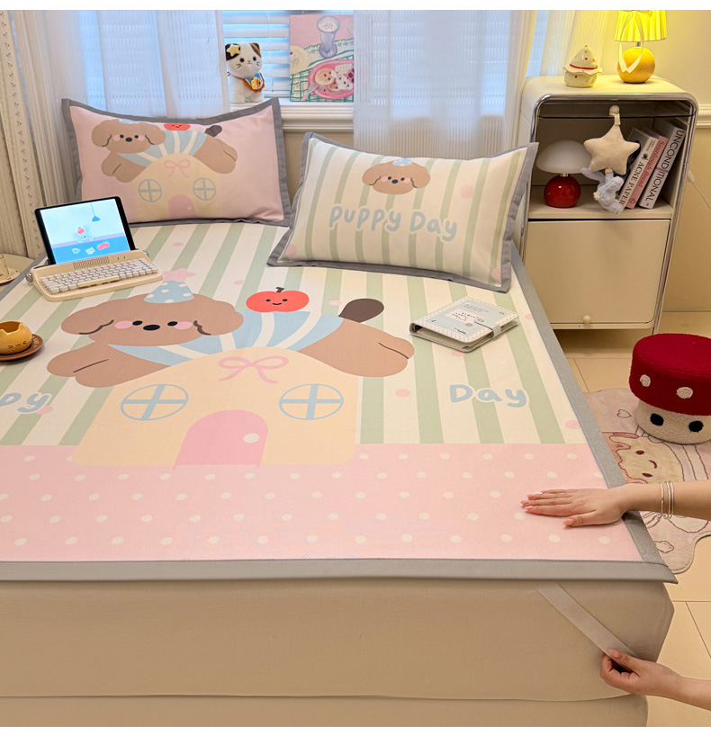 柒月家居 2026新款大版印花碳光冰丝席床席款凉席 房子小狗