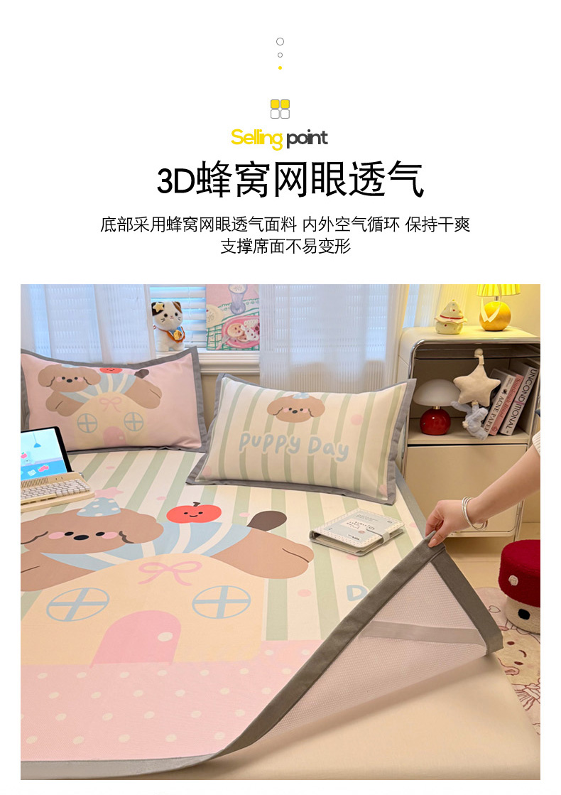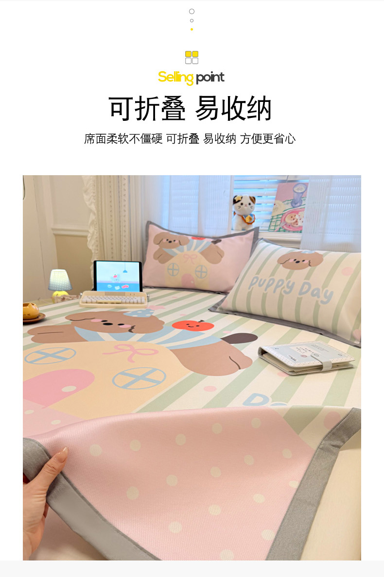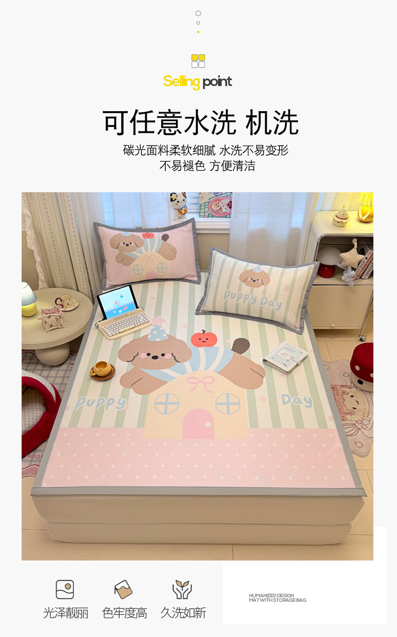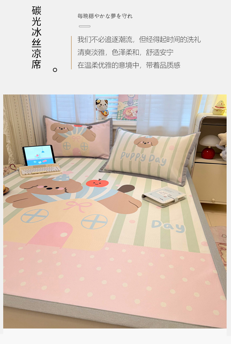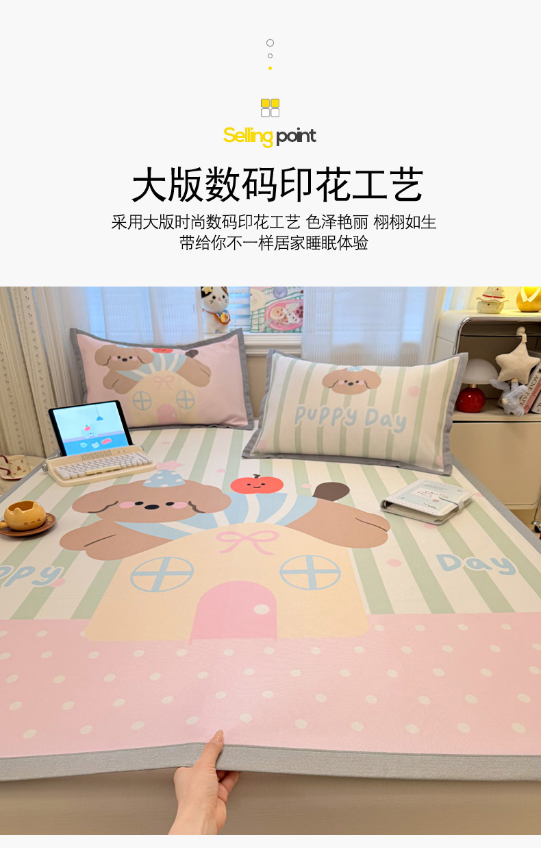(总)柒月家居 2026新款大版印花碳光冰丝席床席款凉席,围兜狗狗,斑点熊,茶茶蓝猫,蛋糕派对,蛋糕汪汪,动物世界,房子小狗,卷卷白狗,满天星辰,猫猫小窝,猫咪伙伴,萌宝,萌系女孩,蘑菇小兔,晚安熊,汪汪乐园,星星之愿,熊猫宝贝,雪纳瑞狗