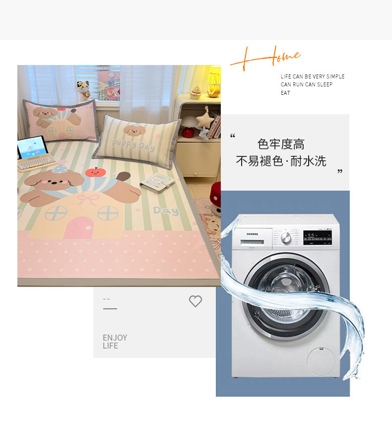 商品名称:柒月家居 2026新款大版印花碳光冰丝席床席款凉席 房子小狗